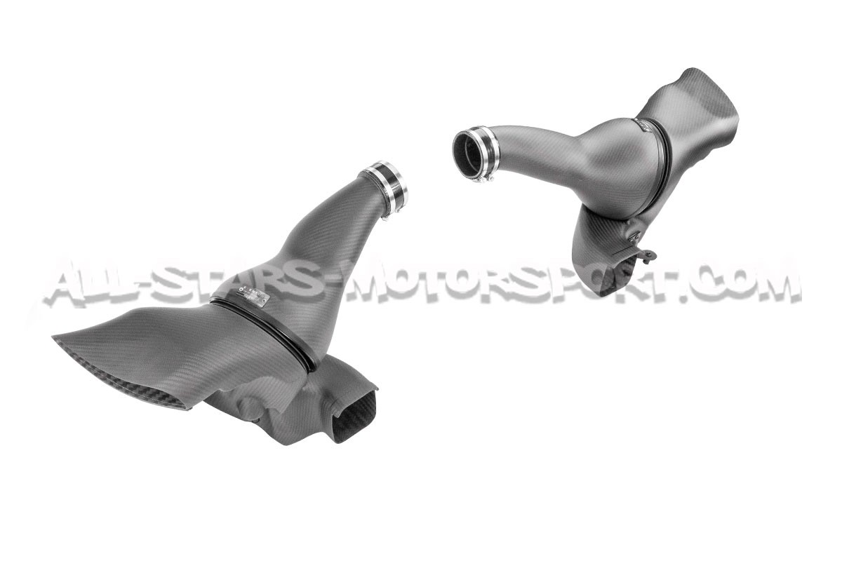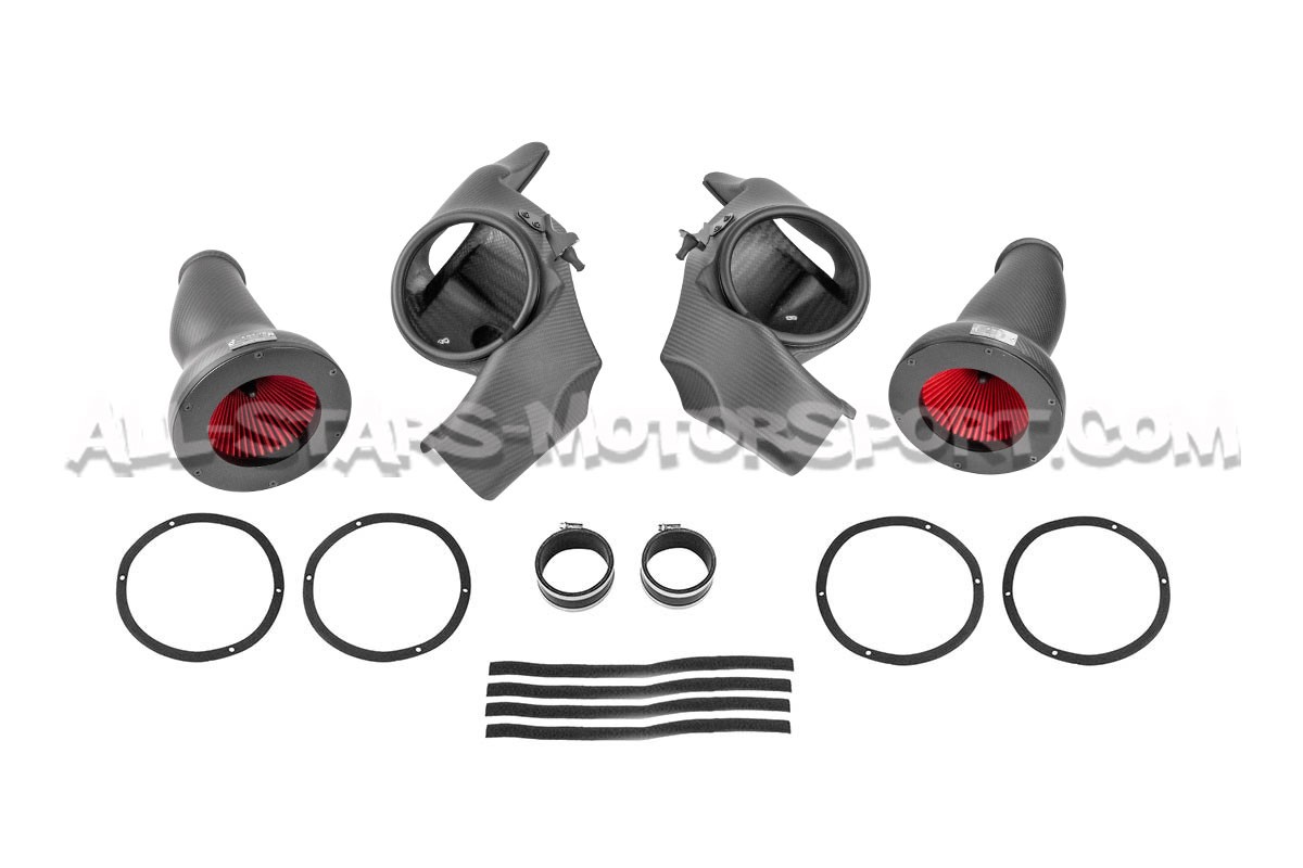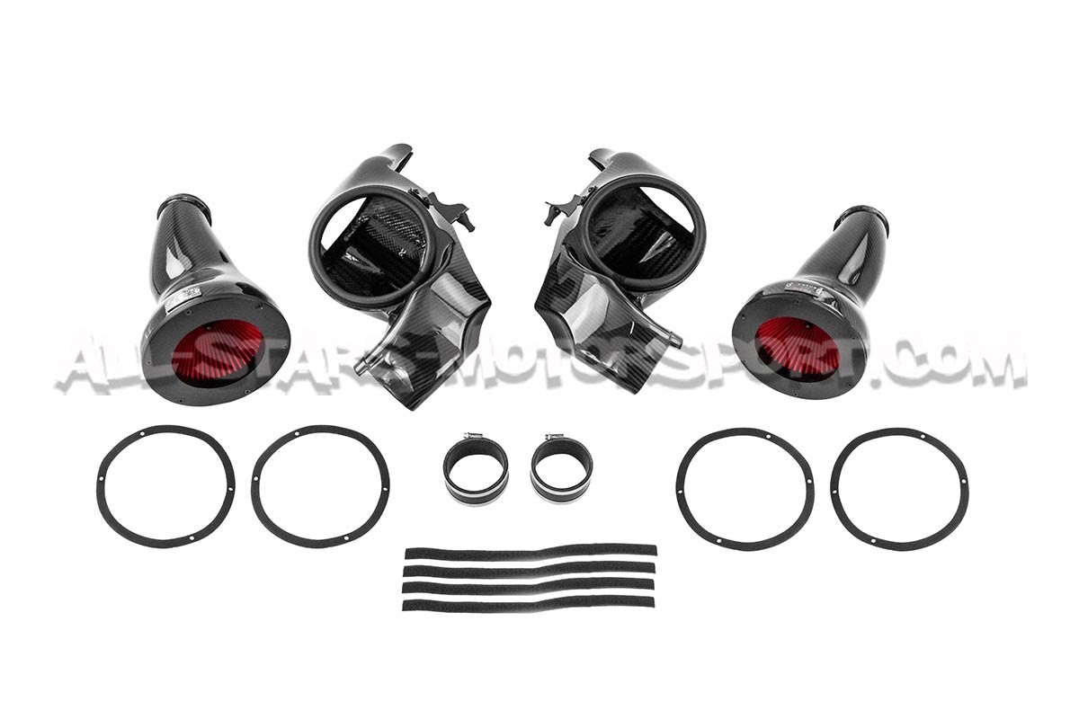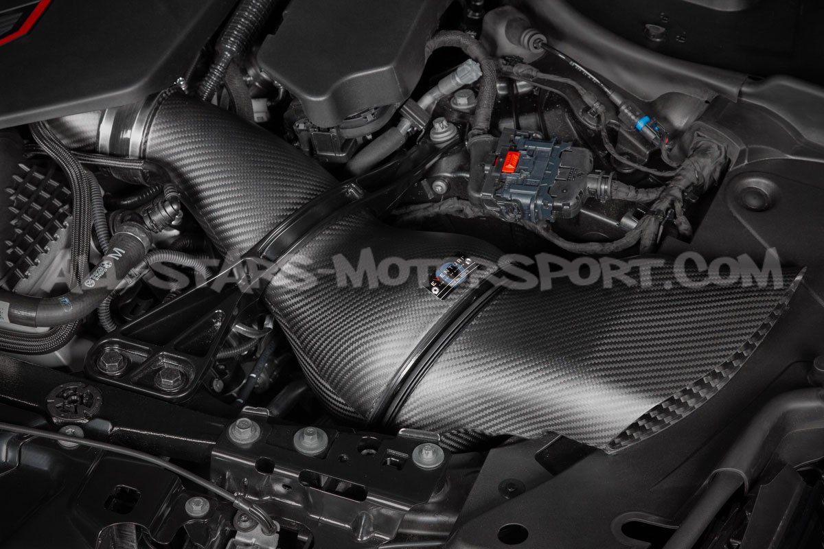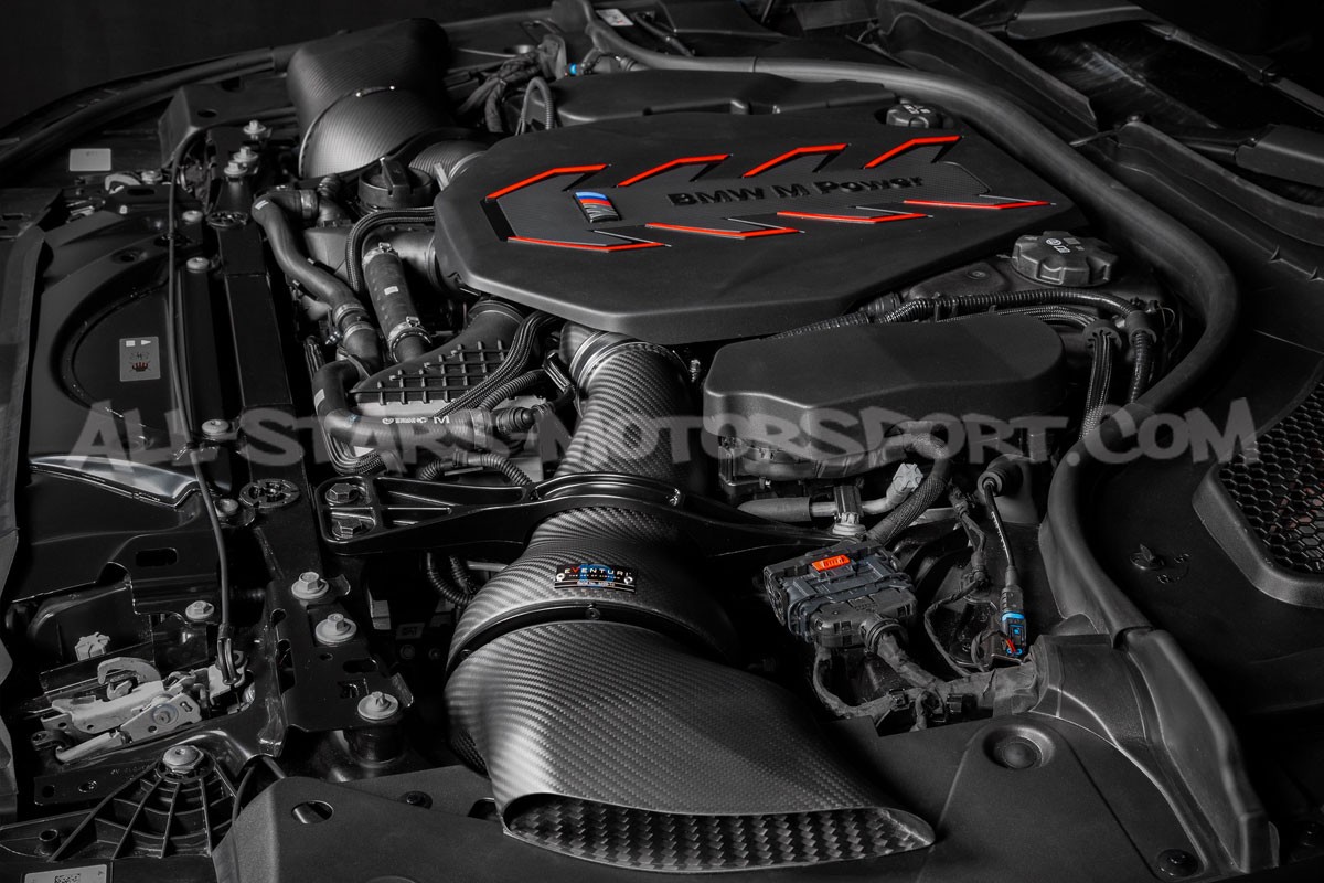The Eventuri carbon fiber intake system intended for the BMW M5 G90 features two large-volume air boxes with washable and reusable synthetic filters, two intake ducts, two carbon intake pipes, and everything needed for quick and easy installation. The efficiency of this kit matches its finish, thanks to its unique design, this Eventuri carbon intake not only increases incoming airflow but also maintains low intake temperatures, providing a gain of about 17hp over a stock engine!