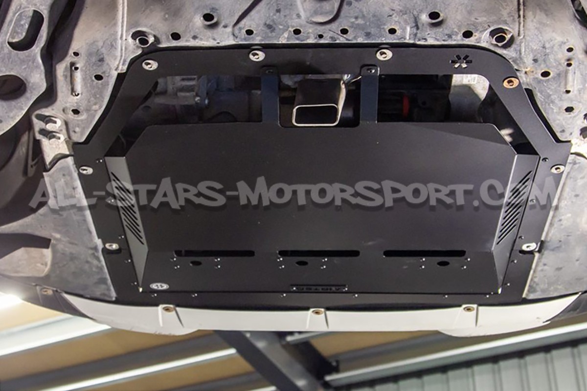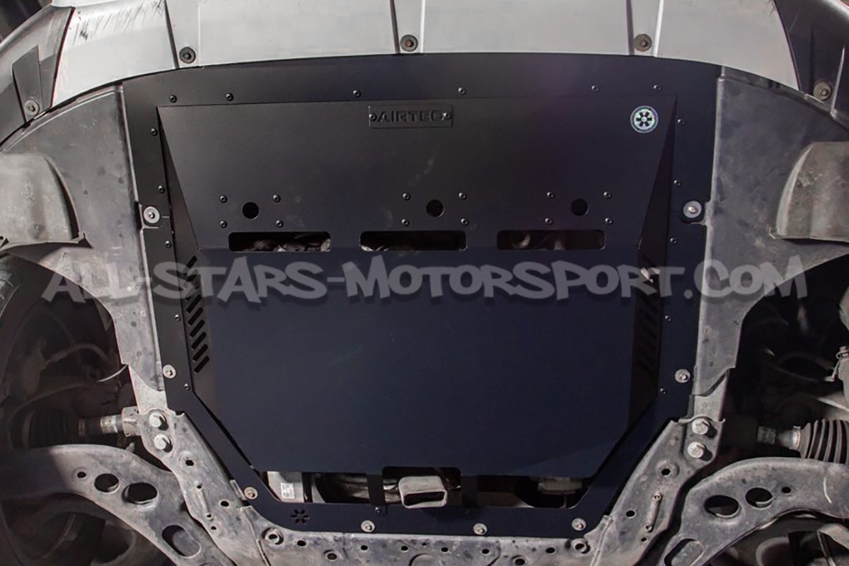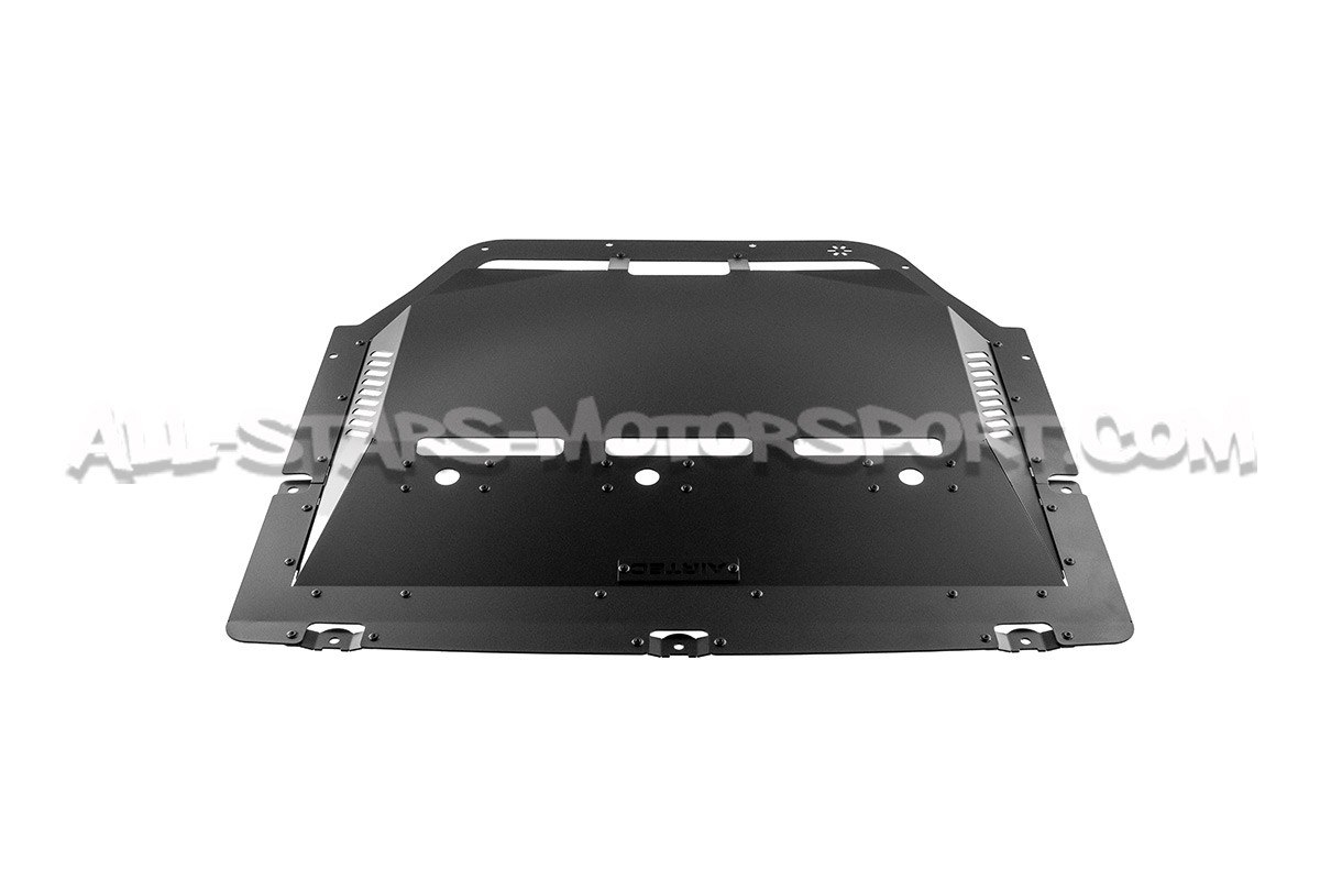 The standard undertray fitted to the Mini Cooper S / JCW F56 features openings optimized for the stock engine but not for tuned engines or those used on track or under intense driving conditions. To address this issue, Airtec offers a front lower panel made from black aluminum, with significantly greater strength than the original part. This specific undertray features XXL air extractors and diffusers that help channel engine heat downward, in order to reduce effectively engine bay temperatures.
