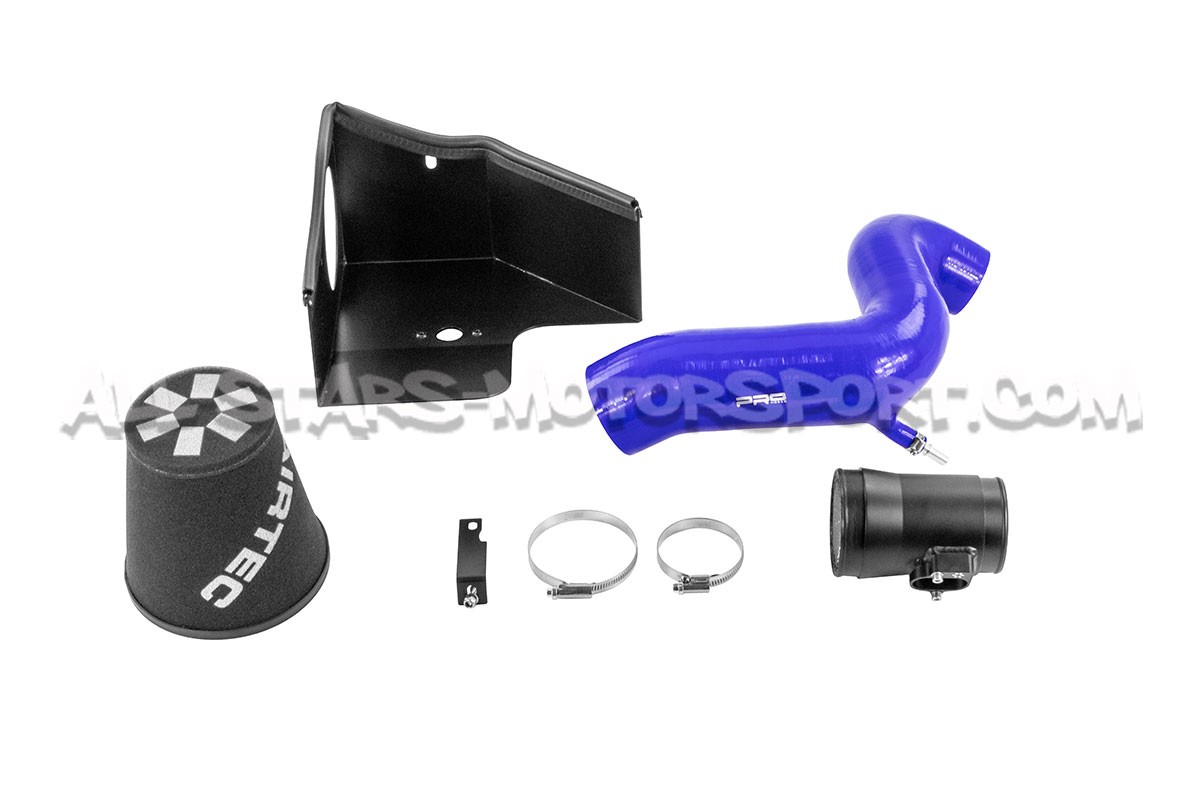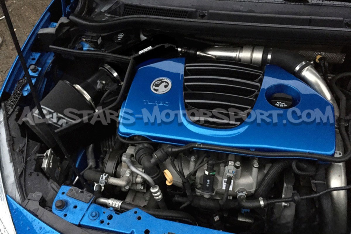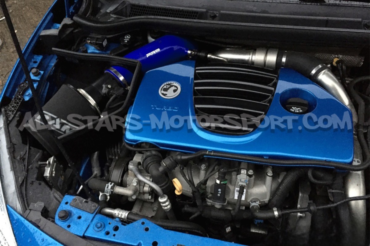 This Airtec intake, intended for the 2.0T engines powerizing from factory the Opel Astra J OPC, fits without any modification to provide both an aggressive sound and to increased power and torque. Including a washable foam filter, a large-volume black or blue silicone intake hose, a black aluminum heat shield, and the full mounting kit, this Airtec intake system is known as one of the best on the market for this engine.