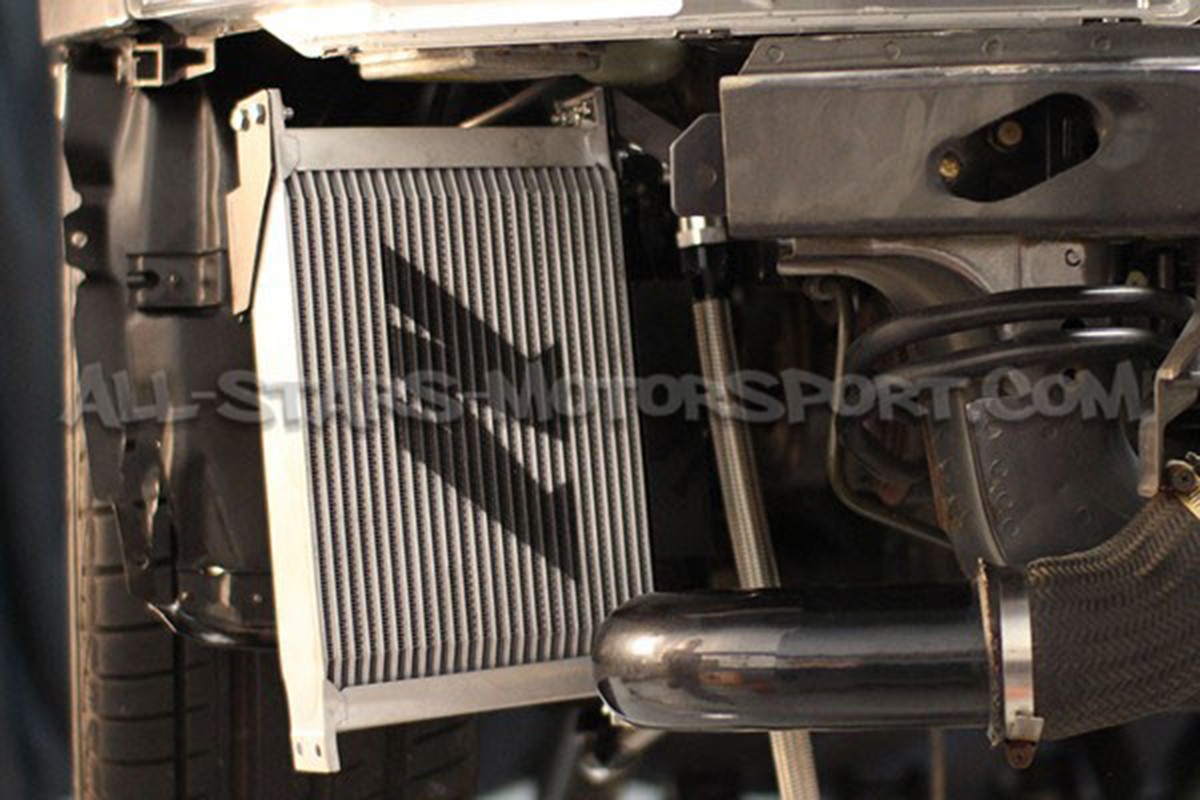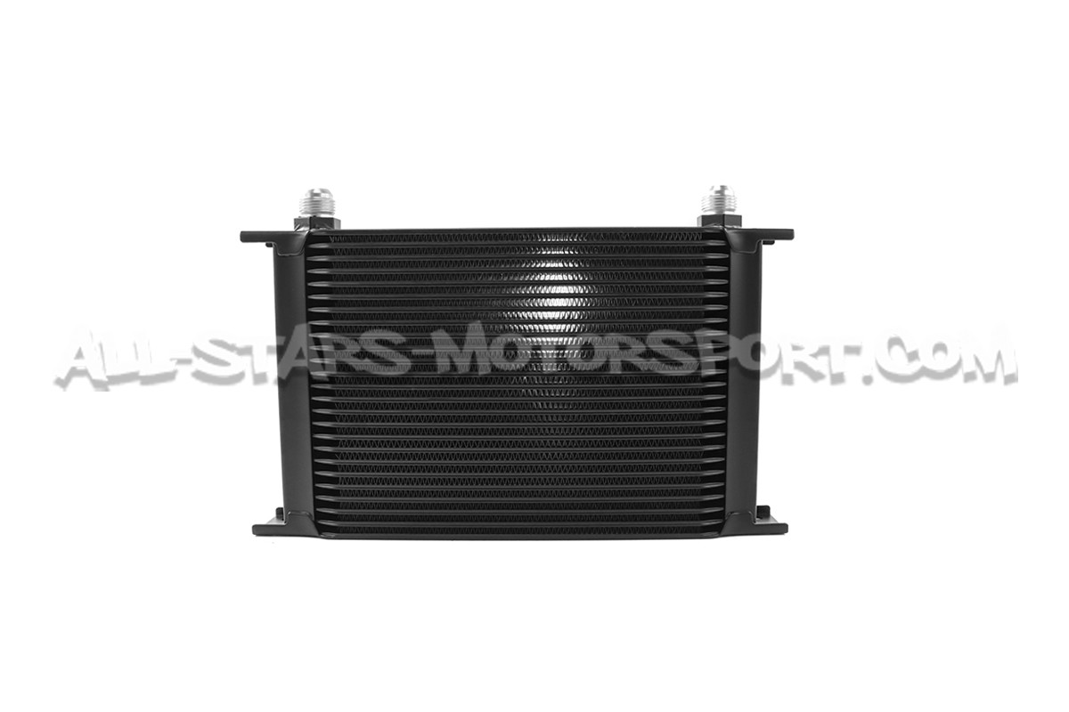 This kit places a large 25-row cooler in the front bumper for optimum airflow and cooling efficiency. This kit includes specific brackets and durable preassembled stainless steel oil lines with -10AN fittings for a bolt-on installation that completely replaces your stock oil-cooling unit. The large and efficient Mishimoto 25-row, stacked-plate oil cooler will decrease oil temperatures by up to 30 degrees and reduce oil degradation, resulting in proper lubrication of engine and turbocharger components, even under the stress of competitive driving !