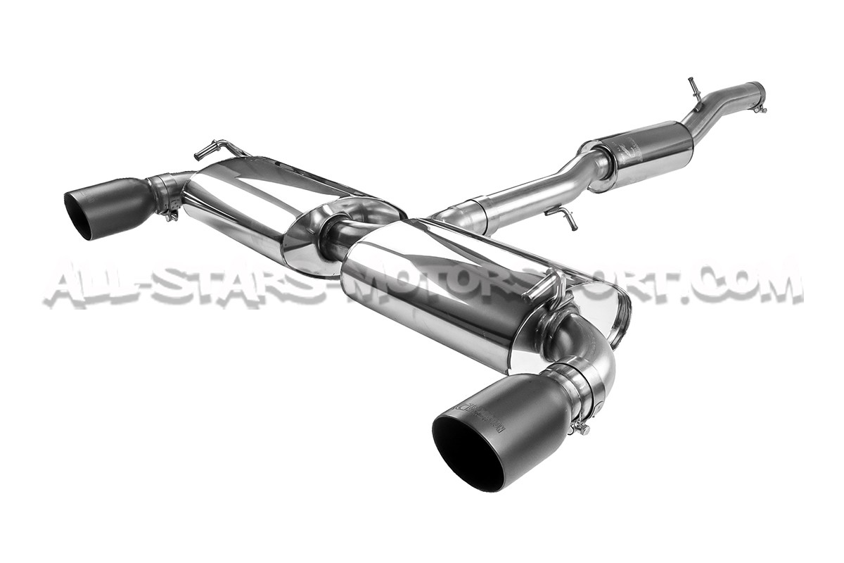 Scorpion catback system made with T304 grade stainless steel, mandrel bent and TIG welded 2.75" / 70mm pipework. Fits from the OEM or aftermarket catalyst, featuring resonated or non resonated midpipe and black or polished 100mm Daytona tailpipes !