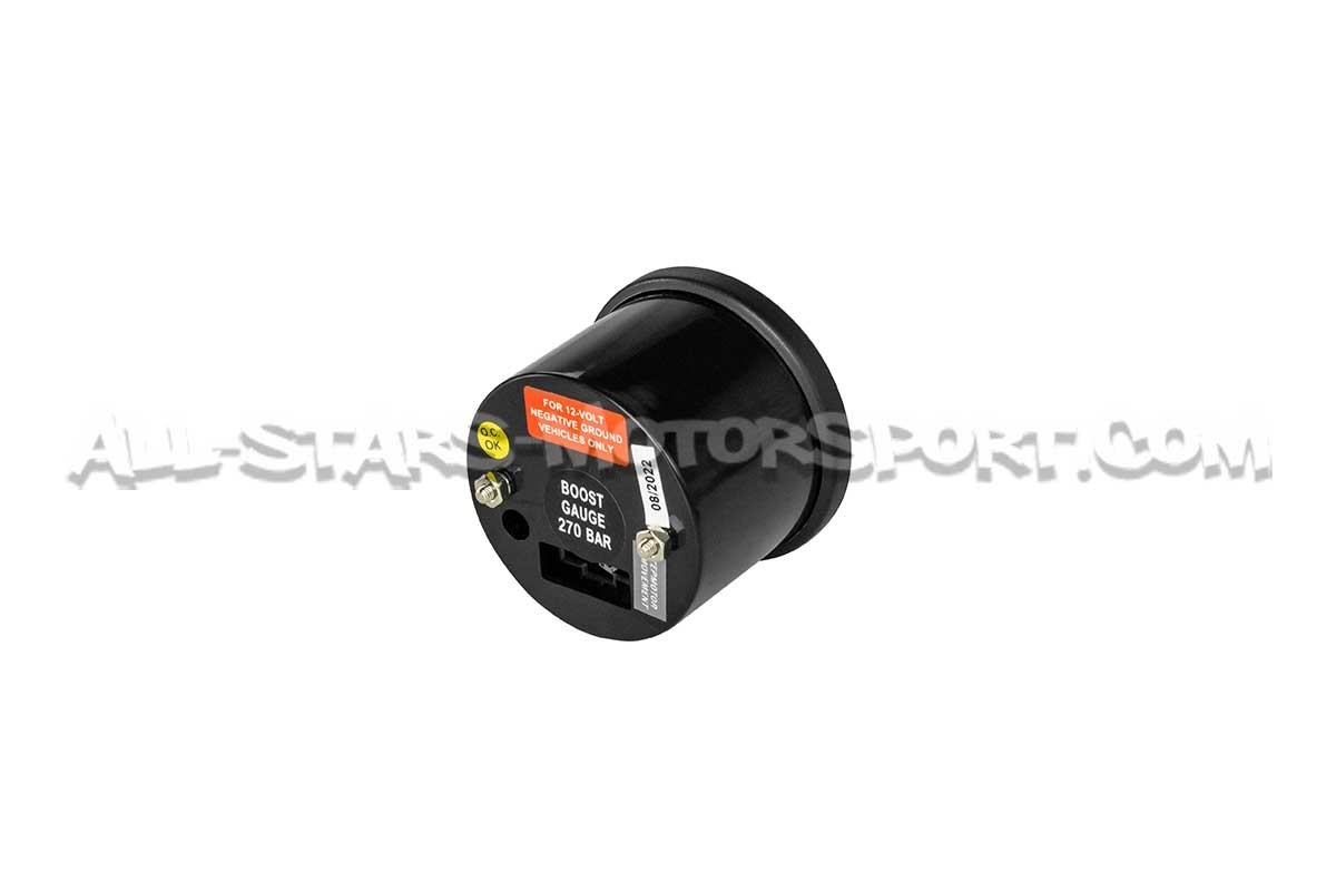 This Prosport Clear Lens 52mm electronic turbo pressure gauge has been specifically designed to fit perfectly into the Volkswagen "R series" interiors equipped with white backlighted cluster and blue needles. Graduated up to 2 bars, this gauge comes with a remote sensor to analyse and stabilise the pressure allowing an extremely accurate display.