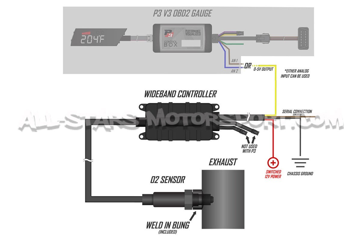 Specifically designed to complement the functions of a P3Cars digital gauge, this Innovate-based LC-2 wideband kit connects to the analog input of any P3 system to display the air/fuel ratio measured through a Bosch LSU 4.9 sensor. Delivered complete and ready to install, this kit features dual 0-5V analog outputs, allowing connection to a gauge, piggyback, or ECU controller.