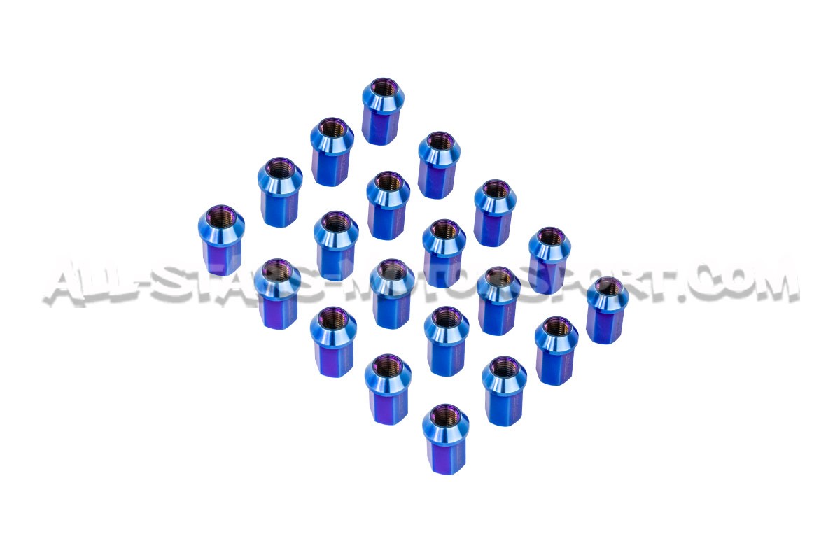 Made from high-strength titanium alloy, this kit of 20 J's Racing wheel nuts is available with a 12x150 or 14x150 thread to choose from, depending on the vehicle. With a length of 35mm with tapered seats for a perfect fit on most aftermarket wheels, these titanium nuts are designed for extreme use, perfectly withstanding heat and traction while having an extremely low weight.