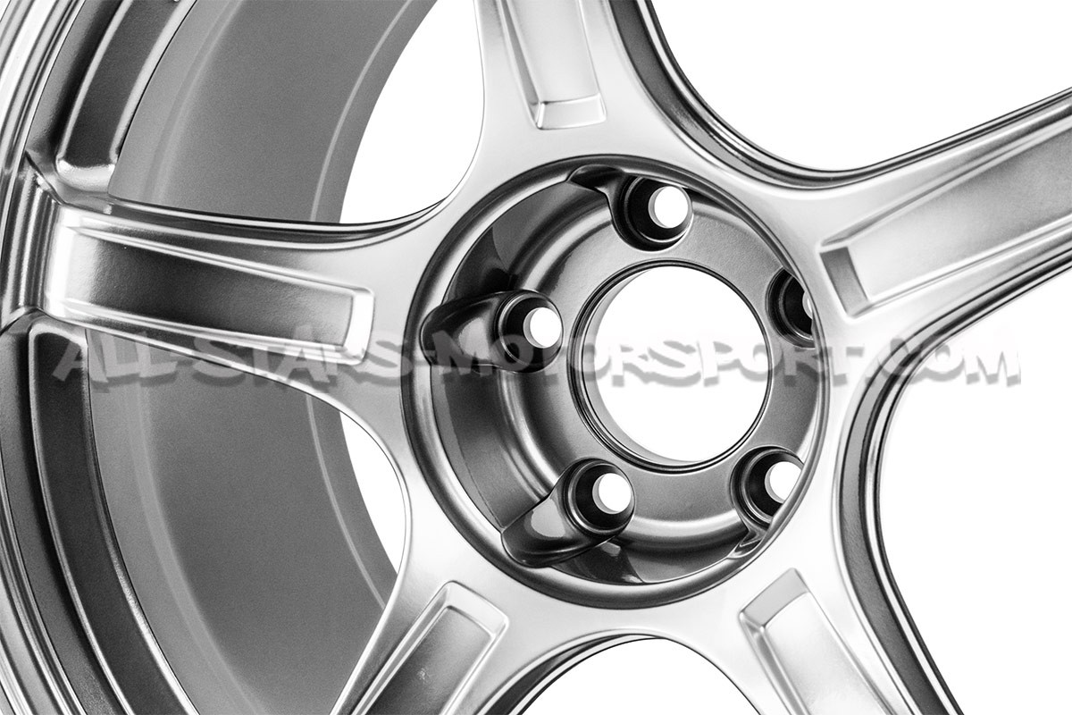 Forged from a solid and ultra-light aluminum alloy, the SSR GTX03 rims feature a timeless design and exemplary Flow Forming manufacturing quality. Presented here in 10.5 x 18 ET12 with a 5 x 114.3 bolt pattern, these SSR wheels features an exclusive silver finish and ideal sizes for perfect fitment on the Nissan 350Z / 370Z or on many other applications sharing the same technical characteristics.