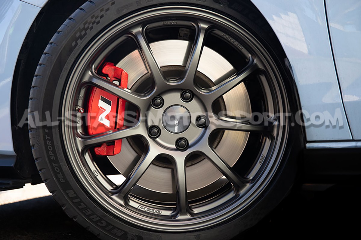 Manufactured in Japan from a high-strength forged alloy, the Enkei PF09 wheels feature a modern concave multi-spoke design that provides ample clearance around the brake caliper, making it easier to install a big brake kit. Listed here in 18x8 with a 5x114.3 bolt pattern and an ET45 offset, these PF09 wheels in a Dark Silver finish are commonly fitted on vehicles such as the Hyundai i30N, Subaru Impreza, Mazda 3 MPS, or Civic Type R, but can also fit many other applications sharing the same technical specifications.