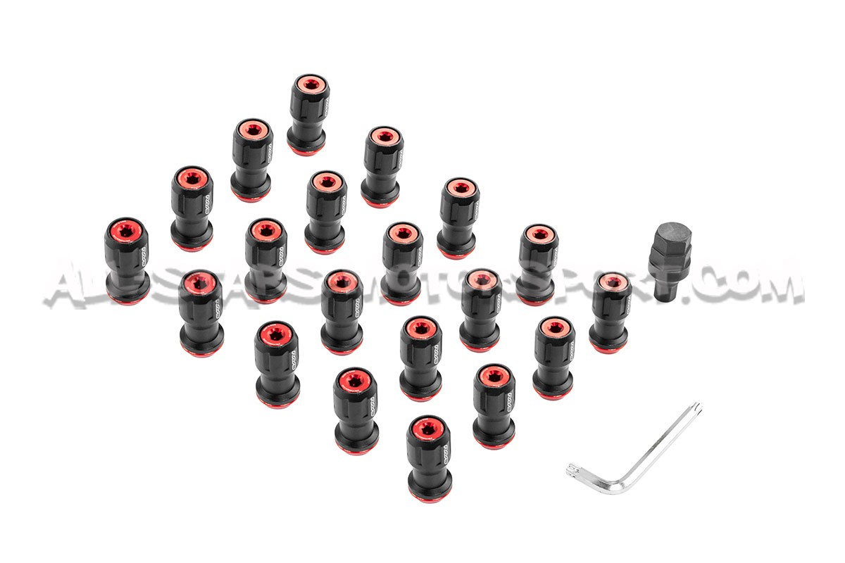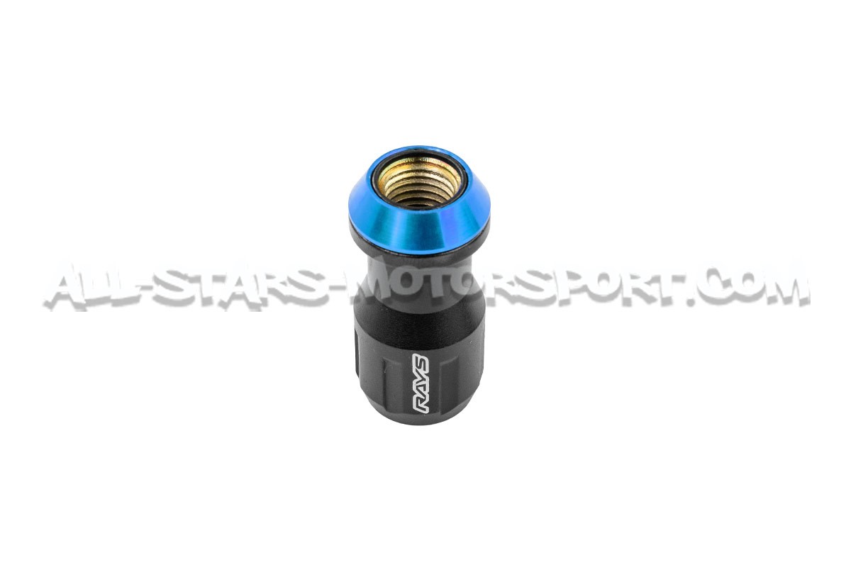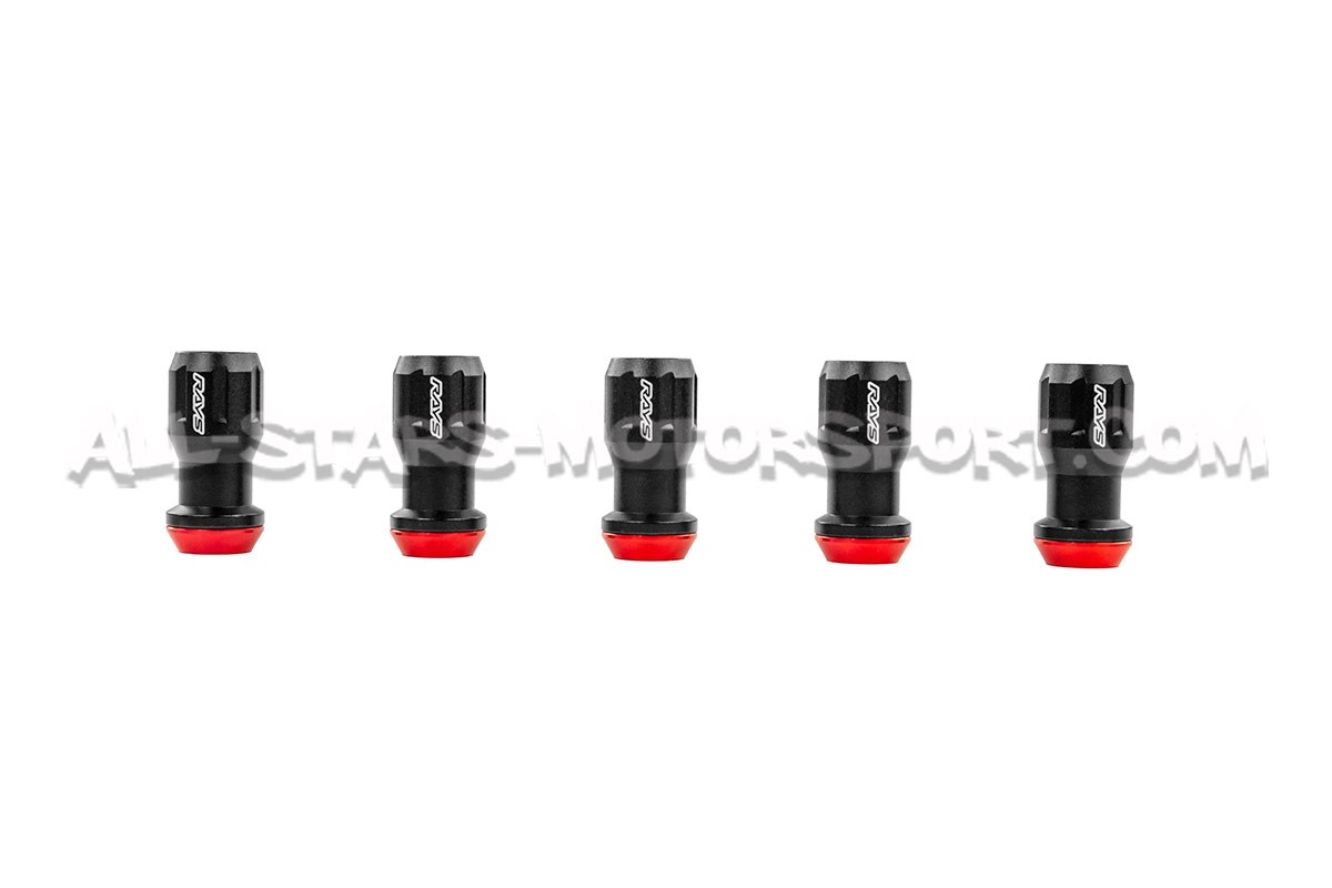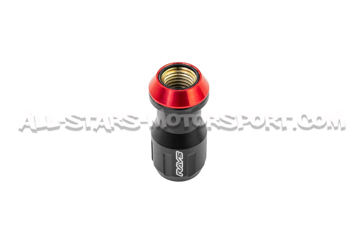 Fabricado en aluminio de alta calidad, este kit de 20 tuercas de ruedas Rays Formula está disponible en rojo, azul o negro y con rosca 12x125, 12x150 o 14x150 a elegir según el tipo de vehículo. Suministrado con su llave de desbloqueo especifica 19/21 HEX, este kit tiene una longitud de 45 mm y asientos cónicos para una adaptación perfecta a la mayoría de las llantas del mercado. Diseñadas para soportar todo tipo de uso, estas tuercas ultraligeras son extremadamente confiables y resistentes a diferencia de la mayoría de las tuercas de aleación convencionales que no soportan adecuadamente el calor y la fricción...