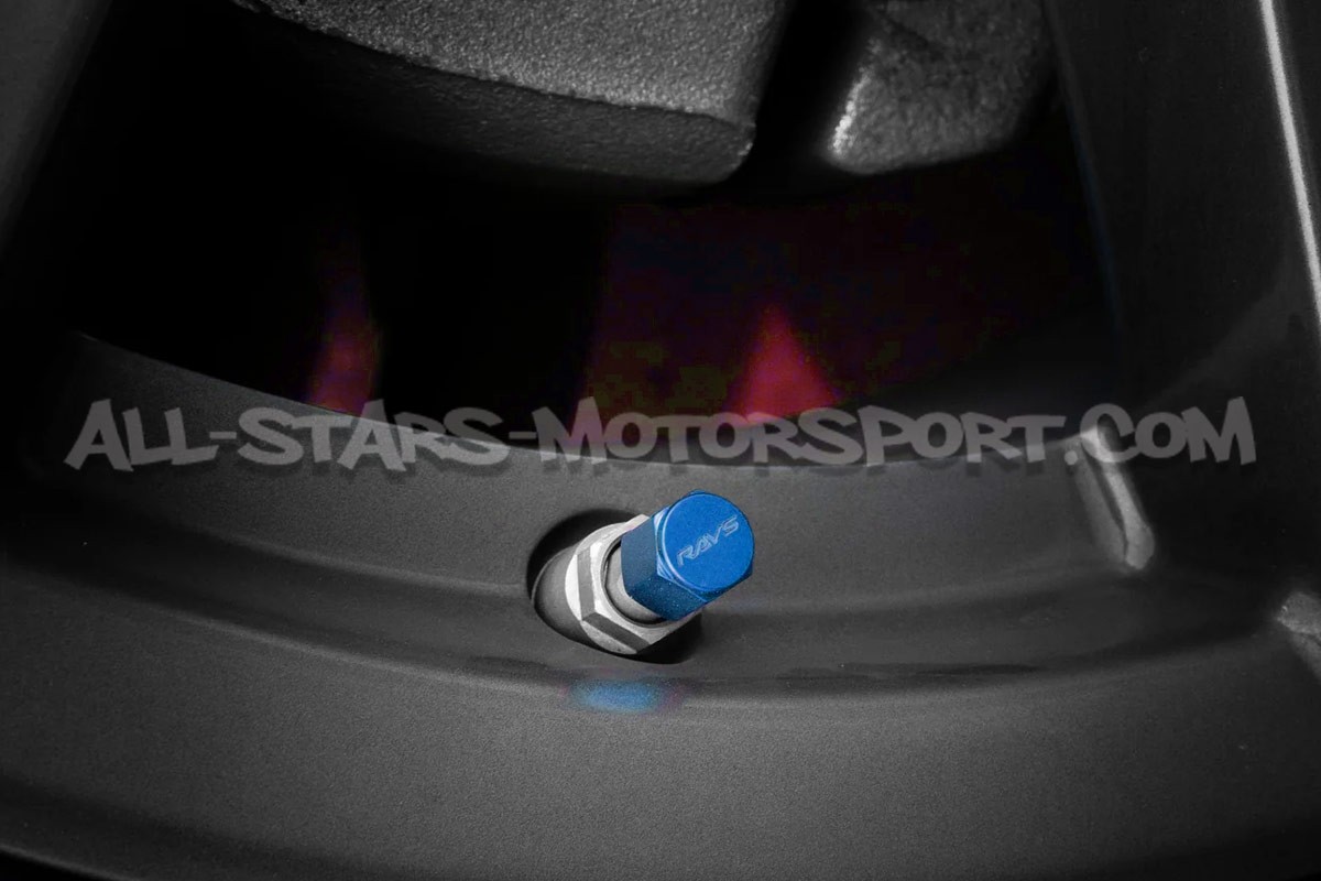 Este kit de 4 tapones de valvulas de llantas Rays está disponible en negro, azul, rojo o gunmetal para combinar perfectamente con el estilo de sus llantas. Totalmente universales, estas tapas de válvulas de aluminio aportarán el pequeño detalle estético que marca la diferencia.