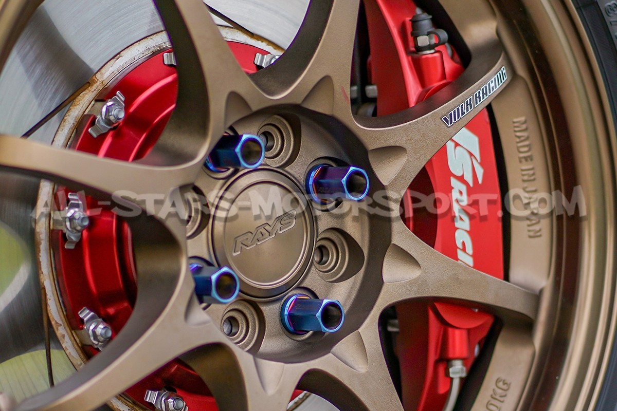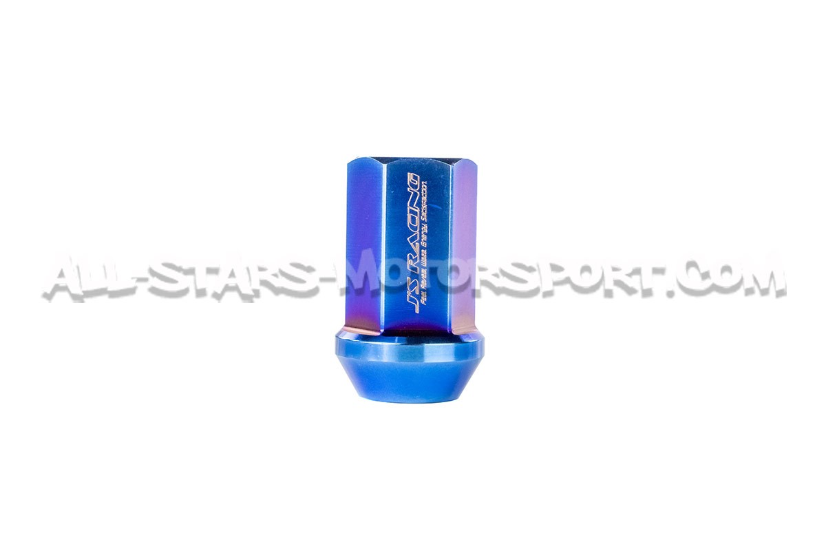 Fabricado en titanio de alta calidad, este kit de 20 tuercas de ruedas J's Racing está disponible con rosca 12x150 o 14x150 a elegir según el tipo de vehículo. Con una longitud de 35mm y asientos cónicos para una adaptación perfecta a la mayoría de las llantas del mercado, estas tuercas de titanio soportan perfectamente el calor y la traccion para un uso en pista / competicion y al mismo tiempo tienen un peso extremadamente bajo para reducir las masas suspendidas.