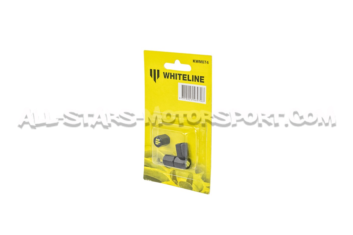 Accesorio universal, este kit de 4 tapones de válvulas anodizados en negro con logo Whiteline amarillo, se adaptará a cualquier tipo de vehículo para aportar un toque exclusivo.