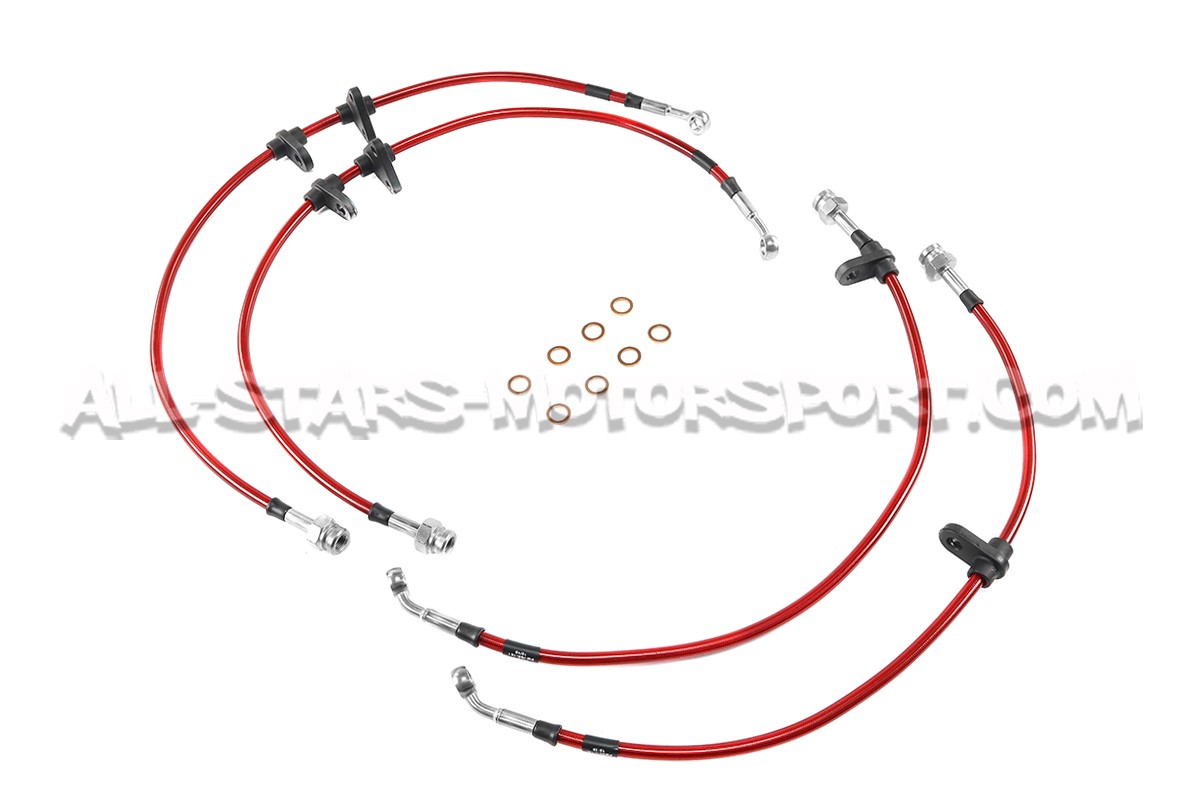 Con un coeficiente de dilatacion mucho menor que el de serie, este kit de 4 latiguillos metalicos de Goodridge permite disfrutar de una potencia y una resistancia del sistema de freno optimal en carretera como en pista ! Llevando los latiguillos delanteros y traseros, este kit disponible en 4 colores incluye el kit de montaje completo y se instala sin modificacion en los Honda Civic EG6 / EK4