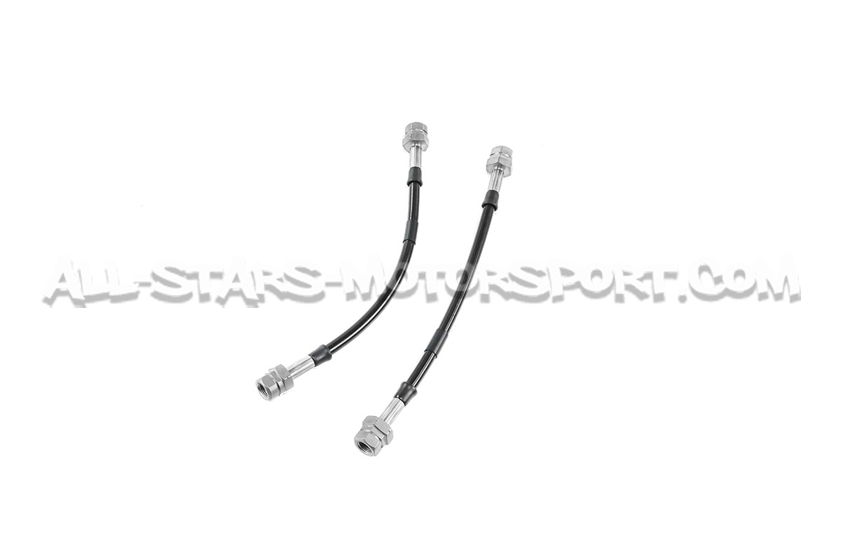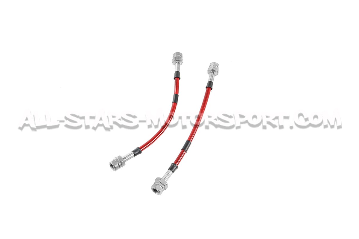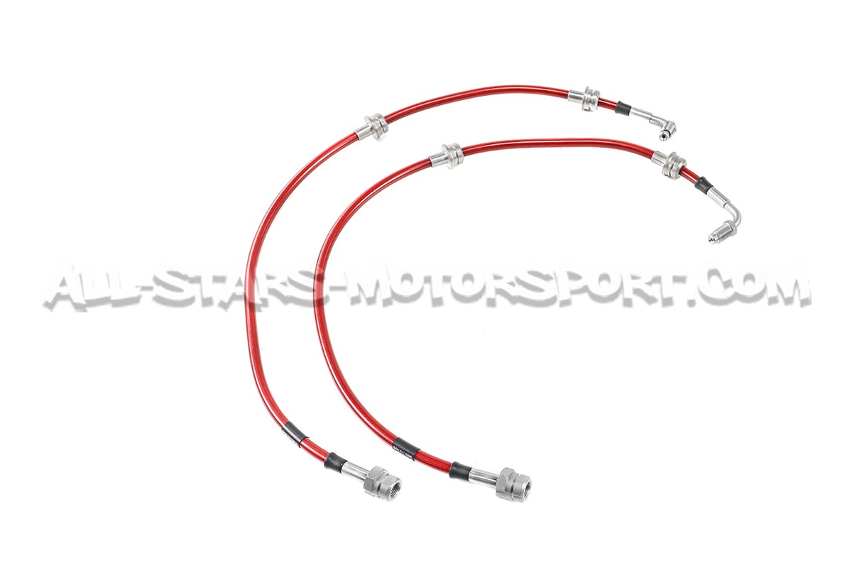 Con un coeficiente de dilatacion mucho menor que el de serie, este kit de 4 latiguillos metalicos de Goodridge permite disfrutar de una potencia y una resistancia del sistema de freno optimal en carretera como en pista ! Llevando los latiguillos delanteros y traseros, este kit disponible en 4 colores incluye el kit de montaje completo y se instala sin modificacion en las Audi RS3 8P / Audi TTRS 8J Mk2 !