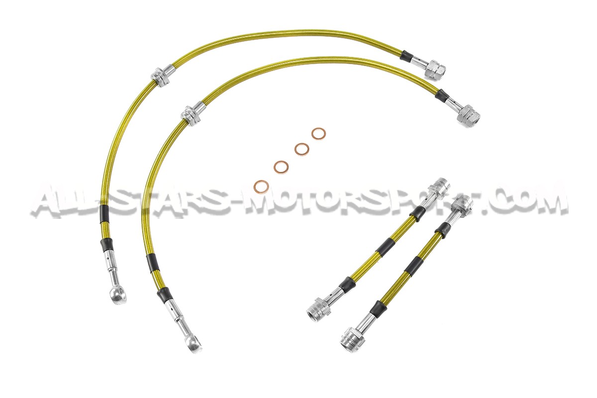 Con un coeficiente de dilatacion mucho menor que el de serie, este kit de latiguillos metalicos de Goodridge permite disfrutar de una potencia y una resistancia del sistema de freno optimal en carretera como en pista ! Llevando los latiguillos delanteros y traseros, este kit disponible en 4 colores incluye el kit de montaje completo y se instala sin modificacion en las Leon 1M 1.8T / Cupra / R
