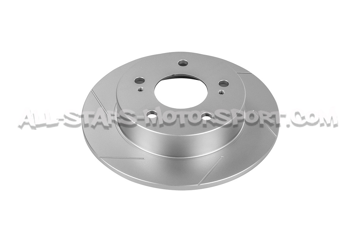 Destinado a los vehículos deportivos para uso deportivo / en carretera, este kit de dos discos de freno Dixcel SD se instala como reemplazo directo de los de serie en las pastillas OEM o deportivas con el fin de proporcionar una mejor eficiencia y mayor resistencia a la frenada trasera del Nissan 200sx S14. Con 6 ranuras transversales invertidas, estos discos tienen una excelente relación precio / rendimiento / confort.