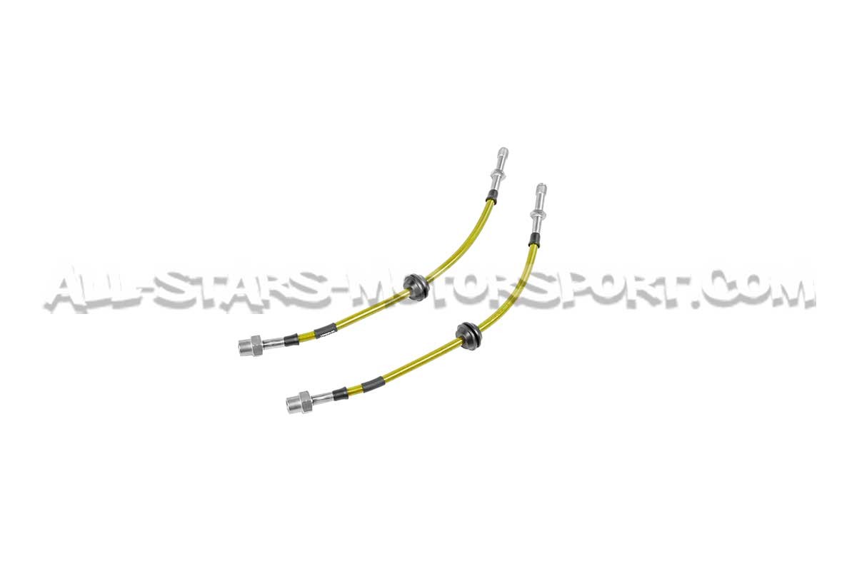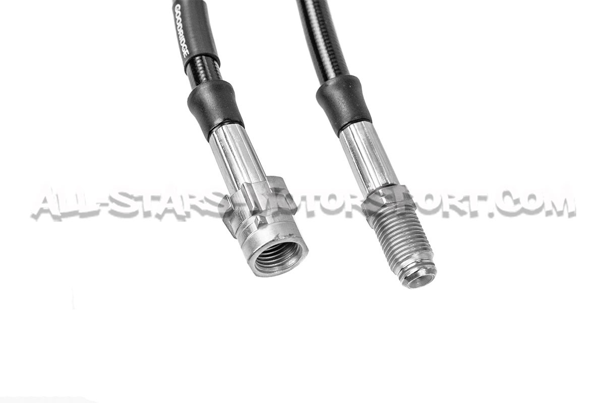 Con un coeficiente de dilatacion mucho menor que el de serie, este kit de latiguillos metalicos de Goodridge permite disfrutar de una potencia y una resistancia del sistema de freno optimal en carretera como en pista ! Llevando los latiguillos delanteros y traseros, este kit disponible en 4 colores incluye el kit de montaje completo y se instala sin modificacion en los BMW M5 F90 / M8 F9x !