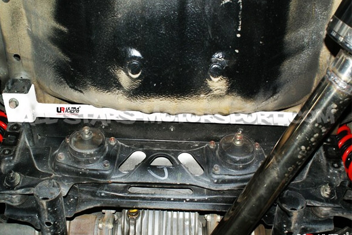 Instalada sin ninguna modificación para reforzar el eje trasero de los Honda S2000, esta barra de refuerzo inferior trasera de 2 puntos Ultra Racing esta compuesta por una estructura de acero de alta densidad que permite resistir presiones extremas y tiene un acabado blanco muy cualitativo