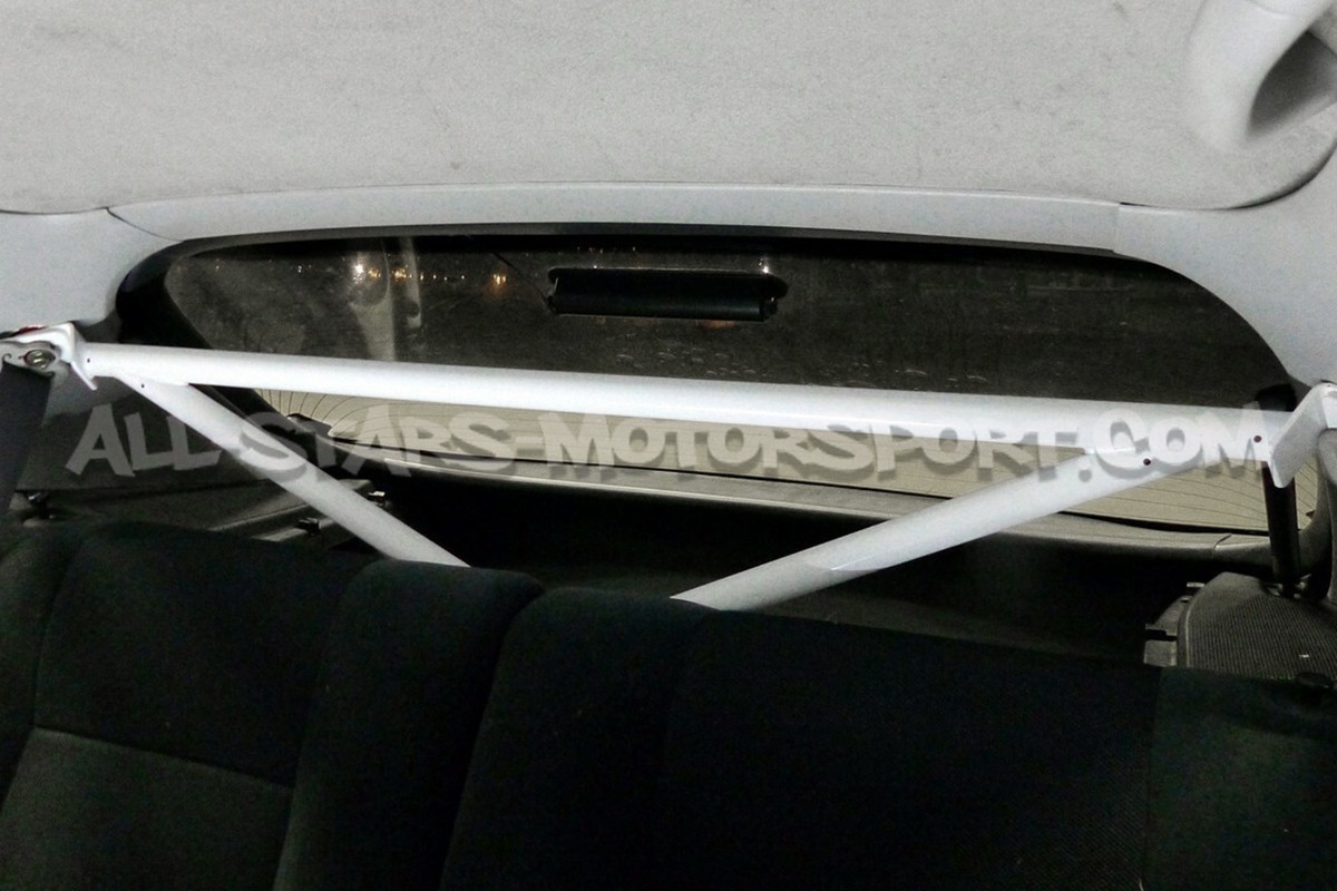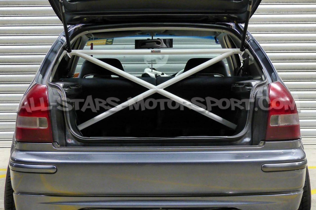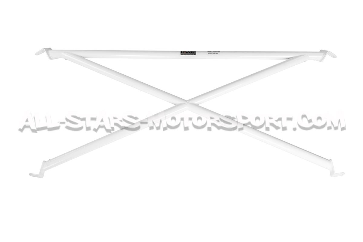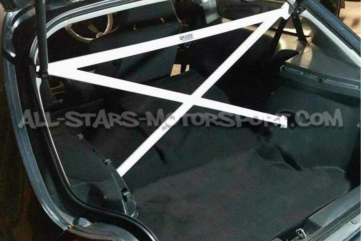 Instalada sin ninguna modificación para reforzar la trasera de los Honda Civic EK, esta barra en cruz (X bar) trasera de 4 puntos Ultra Racing esta compuesta por una estructura de acero de alta densidad que permite resistir presiones extremas y tiene un acabado blanco muy cualitativo.