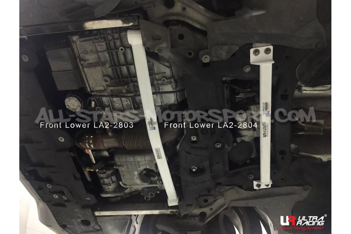 Instalada sin ninguna modificación para reforzar el eje delantero de los Mercedes A45 AMG W176, esta barra inferior delantera de 2 puntos Ultra Racing esta compuesta por una estructura de acero de alta densidad que permite resistir presiones extremas y tiene un acabado blanco muy cualitativo