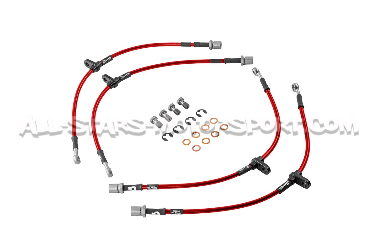 Con un coeficiente de dilatacion mucho menor que el de serie, este kit de 4 latiguillos metalicos de Goodridge permite disfrutar de una potencia y una resistancia del sistema de freno optimal en carretera como en pista ! Llevando los latiguillos delanteros y traseros, este kit disponible en 4 colores incluye el kit de montaje completo y se instala sin modificacion en las Impreza WRX / STI 08-18 !