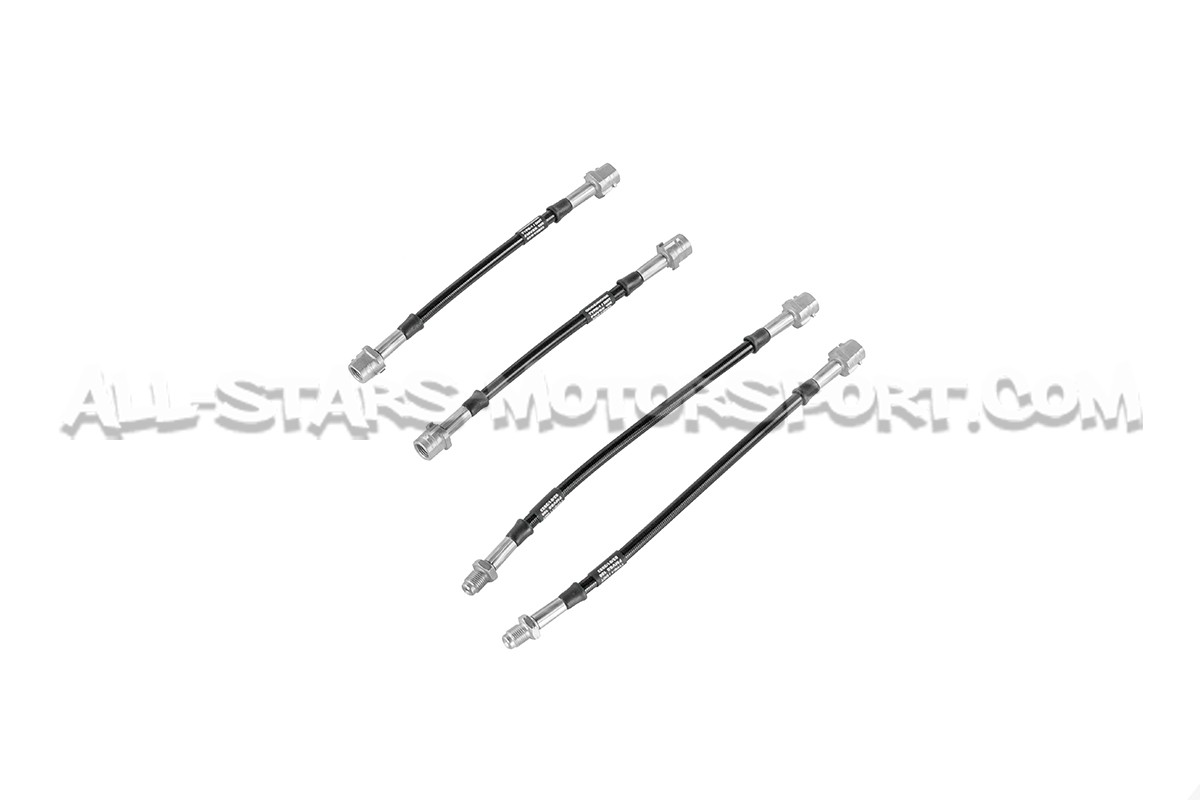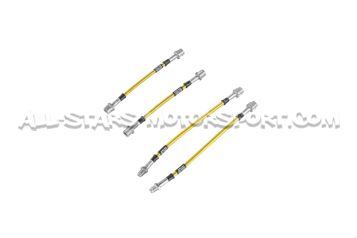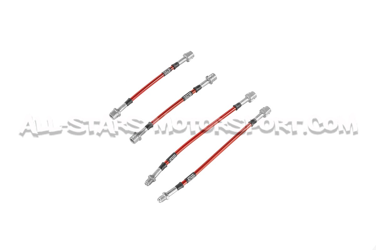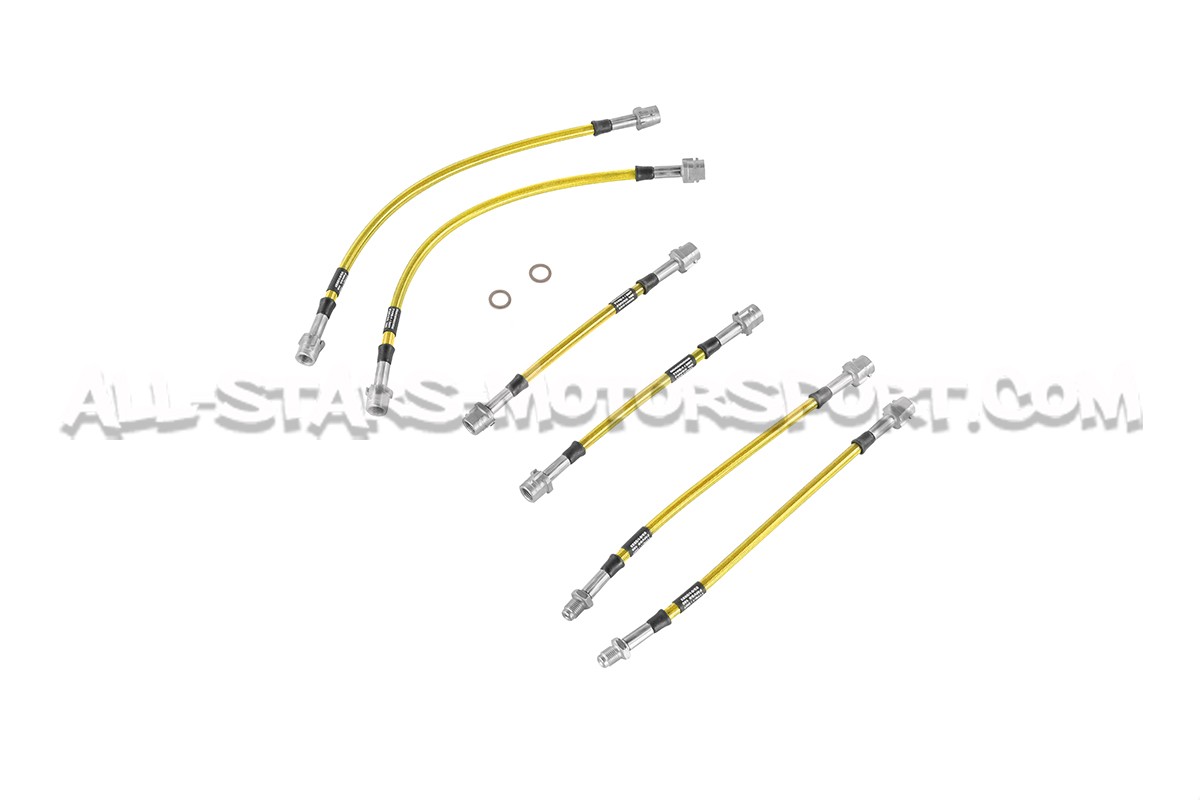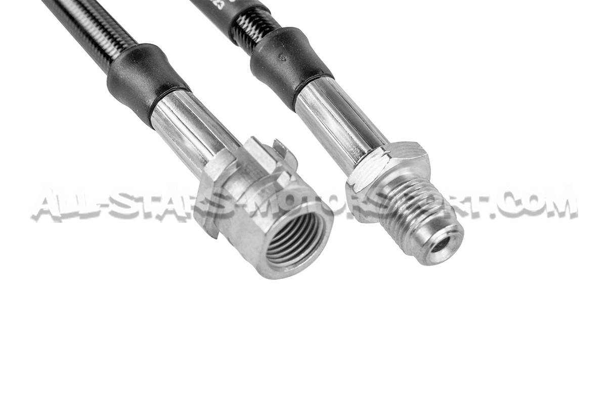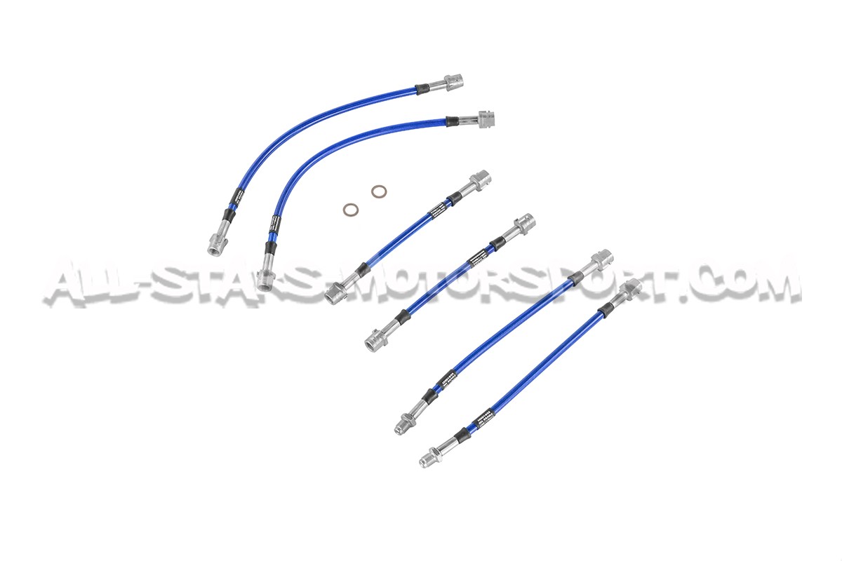Con un coeficiente de dilatacion mucho menor que el de serie, este kit de 6 latiguillos metalicos de Goodridge permite disfrutar de una potencia y una resistancia del sistema de freno optimal en carretera como en pista ! Llevando los latiguillos delanteros y traseros, este kit disponible en 4 colores incluye el kit de montaje completo y se instala sin modificacion en los Audi S4 B5.