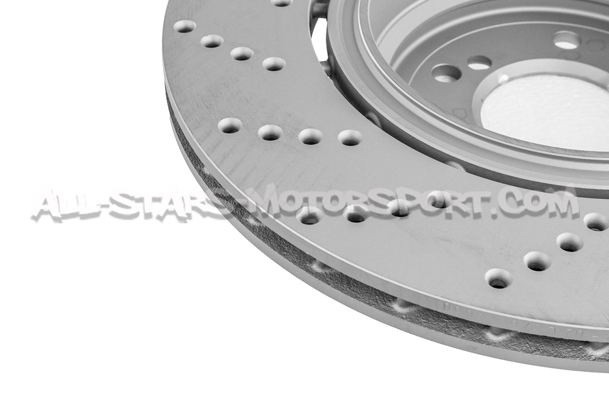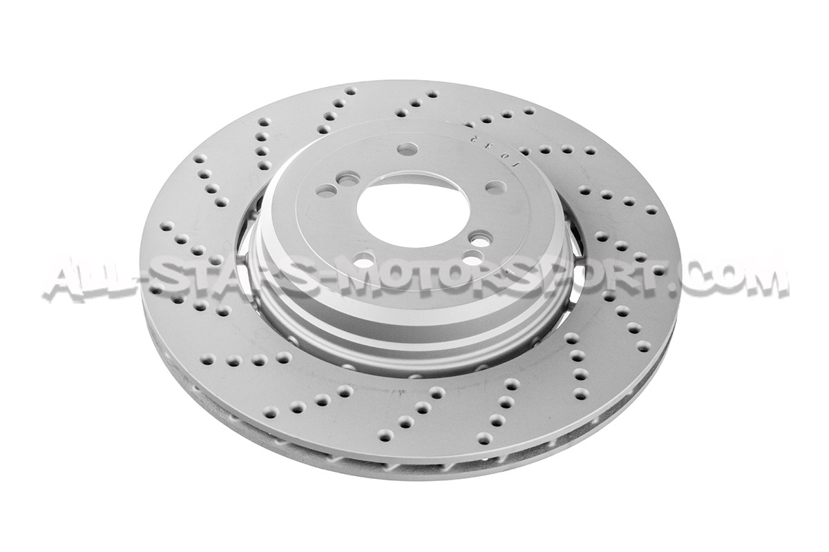 Destinado a los vehículos deportivos para uso deportivo /race, este kit de dos discos de freno Dixcel FP se instala como reemplazo directo de los de serie en las pastillas OEM o deportivas con el fin de proporcionar una mejor eficiencia y mayor resistencia a la frenada trasera de los BMW M5 E60. Con una pista perforada y ventilada, estos discos tienen una excelente relación precio / rendimiento !