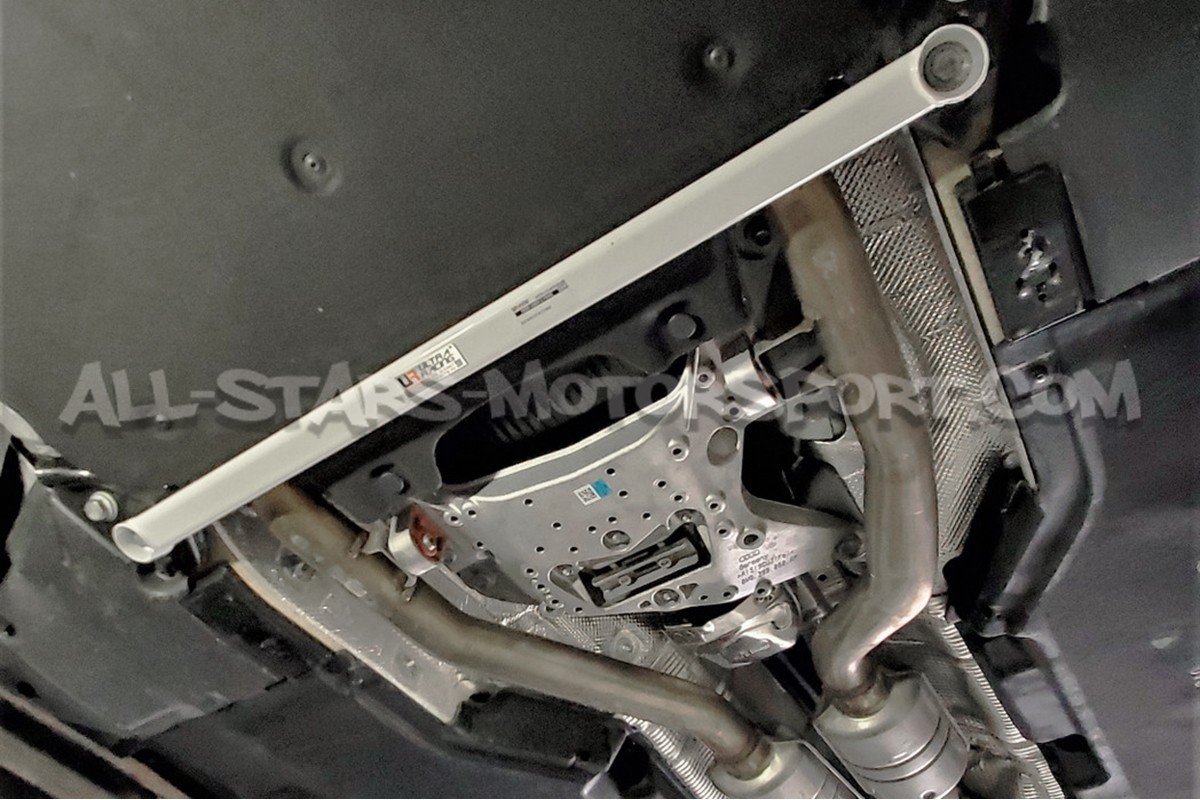 Instalada sin ninguna modificación para reforzar el eje delantero de los Audi A4 B9 / S4 B9, esta barra de refuerzo inferior delantera de 2 puntos Ultra Racing esta compuesta por una estructura de acero de alta densidad que permite resistir presiones extremas y tiene un acabado blanco muy cualitativo