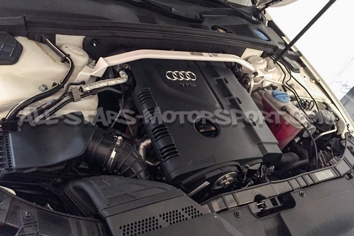 Instalada sin ninguna modificación para reforzar el eje delantero de los Audi A4 B8 / A5 8T 2.0 TFSI, esta barra de torreta superior delantera de 2 puntos Ultra Racing esta compuesta por una estructura de acero de alta densidad que permite resistir presiones extremas y tiene un acabado blanco muy cualitativo que incrementa el aspecto deportivo del motor.