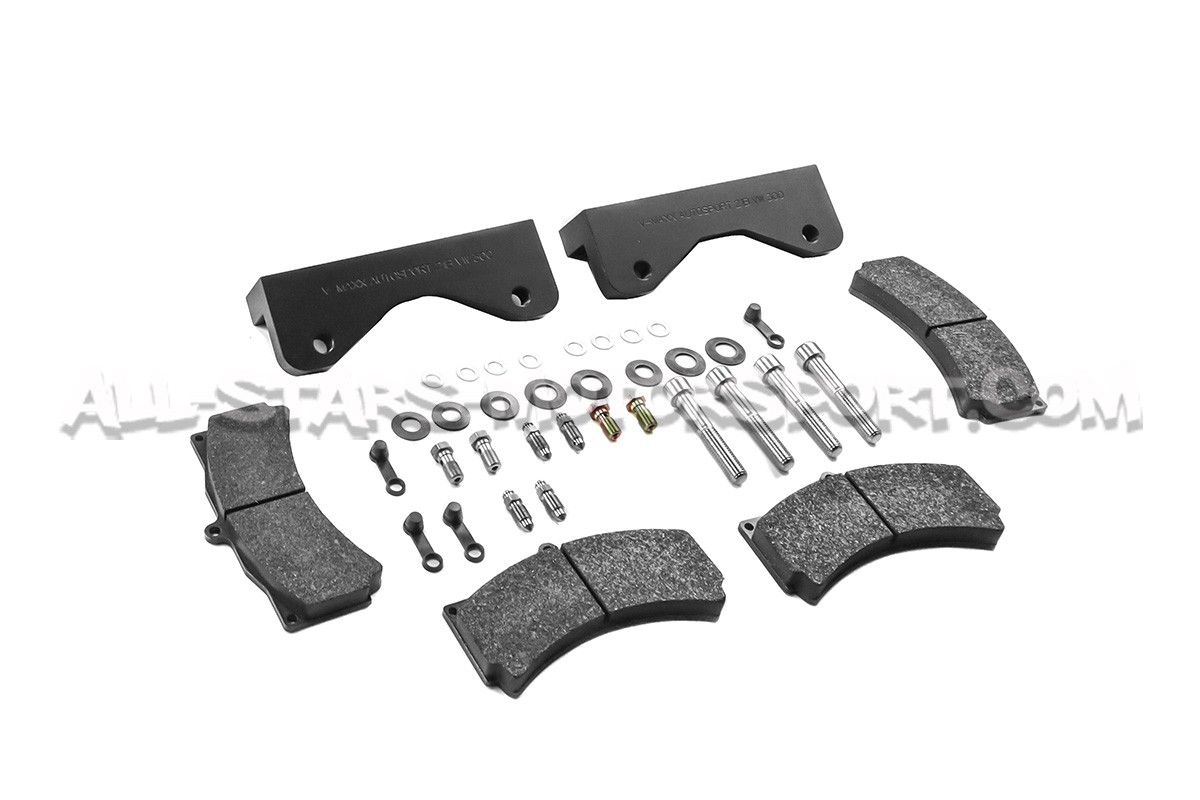 Este kit de freno delantero V-MAXX para BMW 135i E82 / 335i E9x lleva pinzas de aluminio rojo de 6 pistones, discos flotantes de 2 piezas rayados y ventilados de 365mm, latiguillos metalicos, pastillas street / sport de V-MAXX y el kit de montaje completo para una instalacion directa sin modificacion* !
