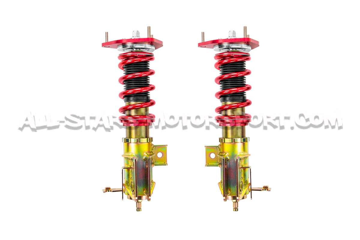 Dedicado sin concesiones al alto rendimiento, este kit de suspensión roscada Apexi N1 se instala sin modificaciones en los Toyota GT86 / GR86 y Subaru BRZ utilizados en la carretera pero también y sobre todo en pista. Equipadas con una estructura monotubo con pistones de gran diámetro, estas suspensiones completas Apexi brindarán una experiencia de conducción única a los pilotos más exigentes gracias al ajuste de la fuerza de amortiguación en 25 vías, copelas 3D de aluminio y una calibracion específia de los muelles.