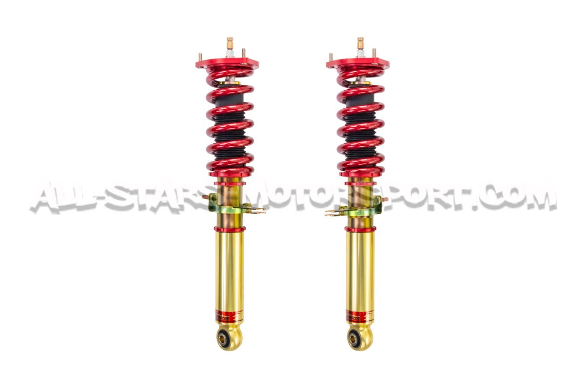 Dedicado sin concesiones al alto rendimiento, este kit de suspensión roscada Apexi N1 se instala sin modificaciones en los Nissan 370Z utilizados en la carretera pero también y sobre todo en pista. Equipadas con una estructura monotubo con pistones de gran diámetro, estas suspensiones completas Apexi brindarán una experiencia de conducción única a los pilotos más exigentes gracias al ajuste de la fuerza de amortiguación en 25 vías, copelas 3D de aluminio y una calibracion específia de los muelles.