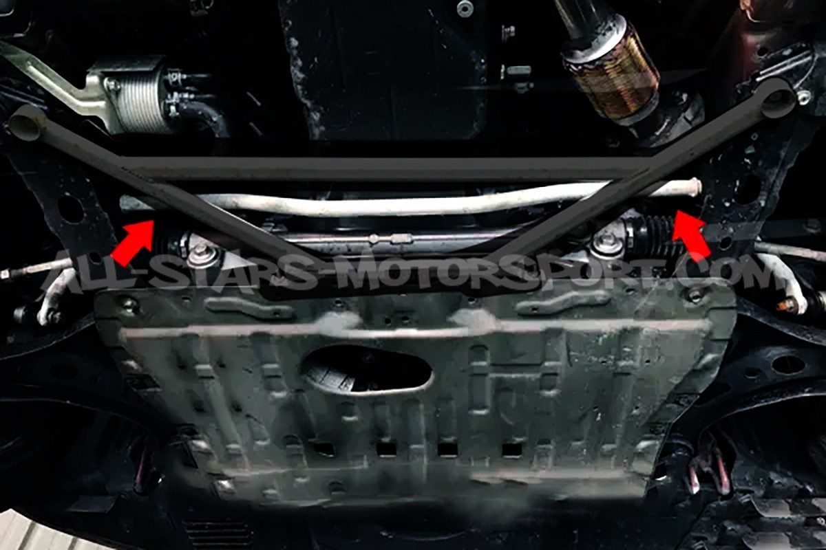 Este kit de barra estabilizadora delantera Ultra Racing de 21mm diametro se instala sin modificación en los Toyota GT86 / GR86 / Subaru BRZ para aumentar la rigidez y reducir el balanceo de la carroceria en curvas.