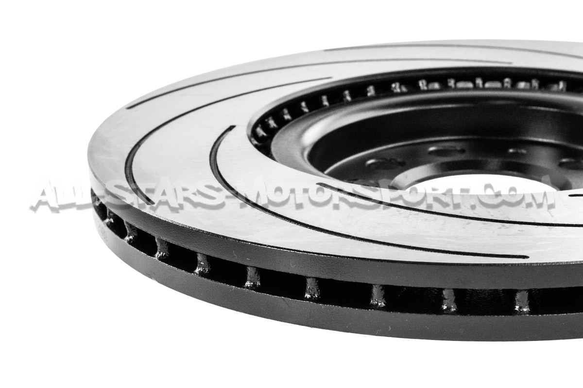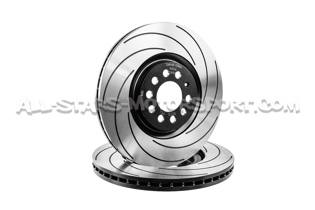 Punta de lanza de la gama Tarox, los discos F2000 presentes en el mercado desde hace más de 20 años siguen siendo una referencia en el mundo del rendimiento automovilístico. Sustitución directa de los discos delanteros montados de serie en los Audi S3 8L / Audi TT 8N / Leon 1M Cupra, estos discos de 312mm cuentan con una superficie ranurada en espiral exclusiva, desarrollada sobre una estructura forjada con alto contenido en carbono que ofrece una gran resistencia y una capacidad de refrigeración óptima tanto en carretera como en circuito.