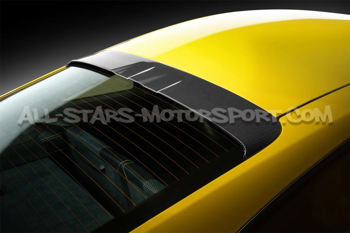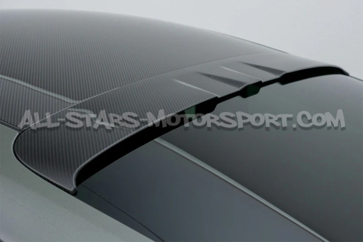 Hecho en fibra de carbono con acabado brillante, este alerón de techo Techart se instala sin modificacion sobre el vidro trasero de los Porsche 911 992 (todas las versiones salvo targa / descapotable) para optimizar la aerodinámica dirigiendo el flujo de aire hacia el alerón trasero y aportar un toque exclusivo y elegante a la parte trasera del vehículo.