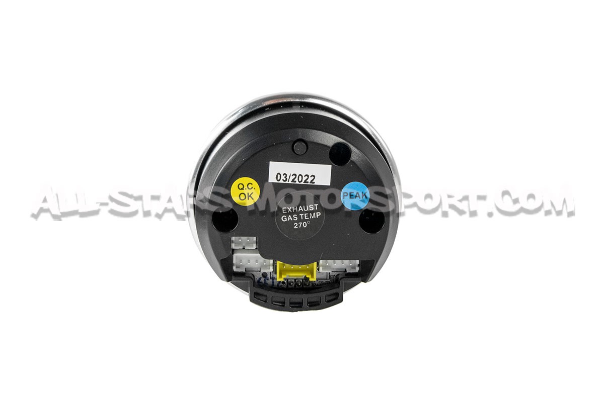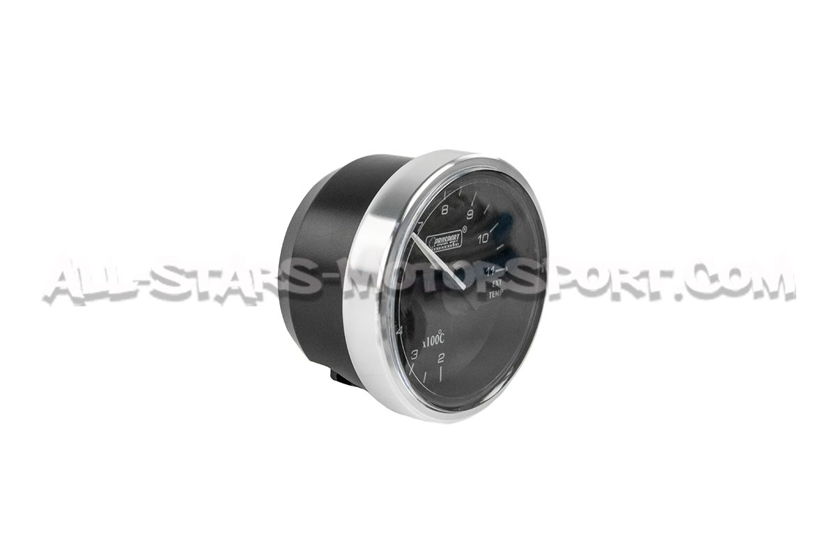 Este manómetro de temperatura de los gases de escape Prosport Supreme Series de 52mm, representa la alta gama de los productos Prosport. Compuesto por una estructura fabricada en Japón, este indicador con fondo negro y retroiluminación ajustable en blanco o rojo, combina estética y eficiencia gracias a su caja con acabado plateado y su movimiento estable y preciso.