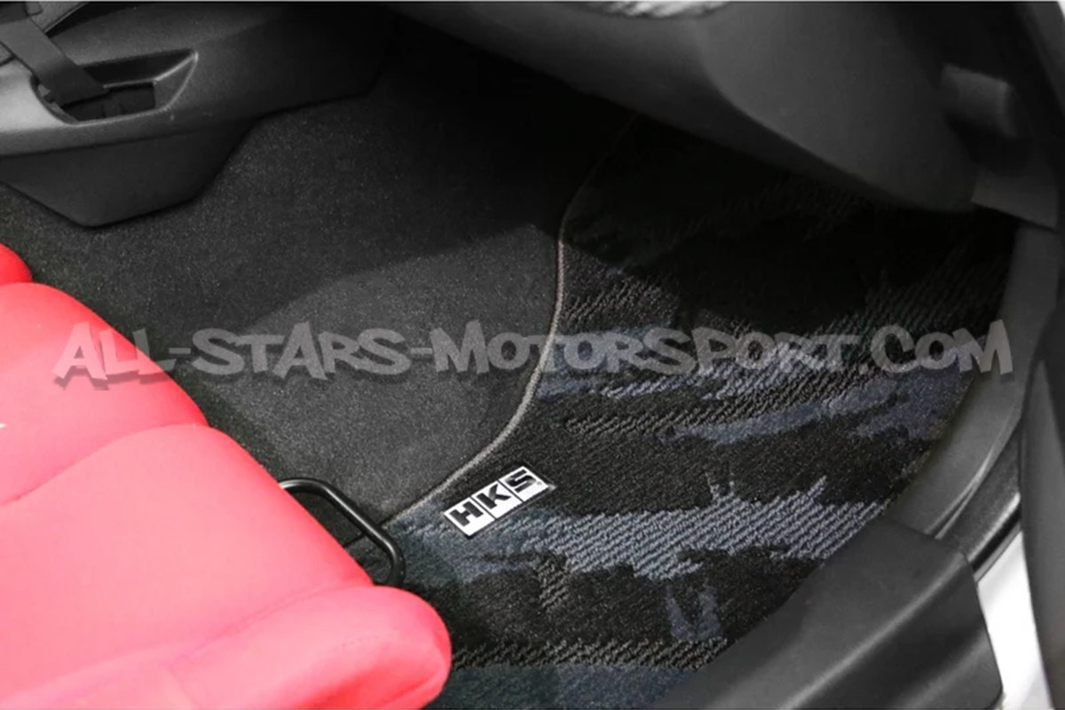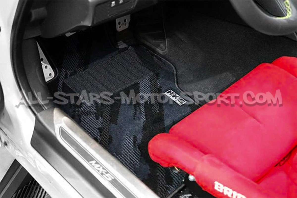 Fabricados en polipropileno de alta calidad, resistentes al agua y con estructura antideslizante, este kit de 3 alfombrillas HKS (delanteras y maletero) se instala sin modificación en los Mazda MX5 ND (conducción a la izquierda, Euro/USA) para aportar un toque exclusivo al habitáculo. Con el estilo gráfico característico de la marca, estas alfombrillas son ligeras, robustas y elegantes.