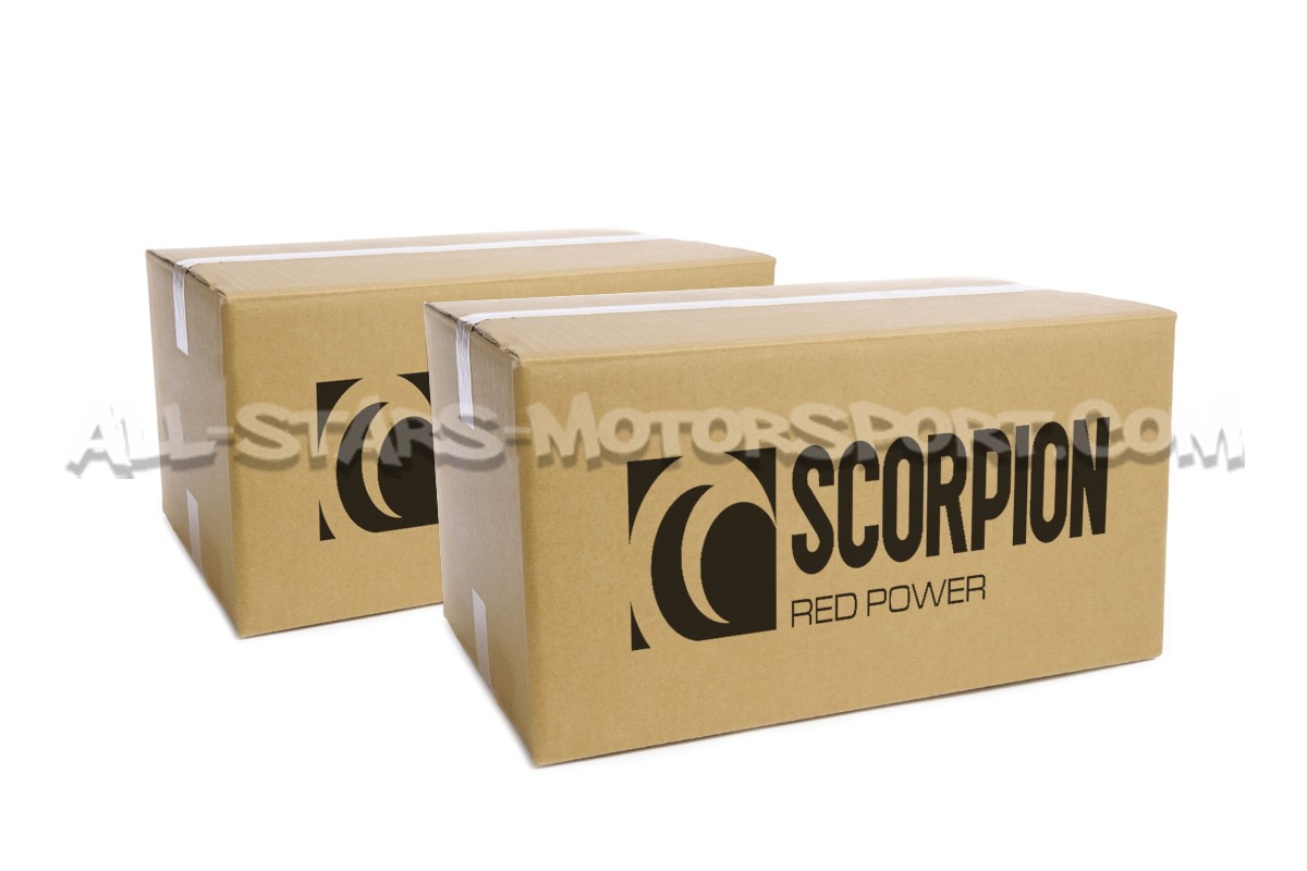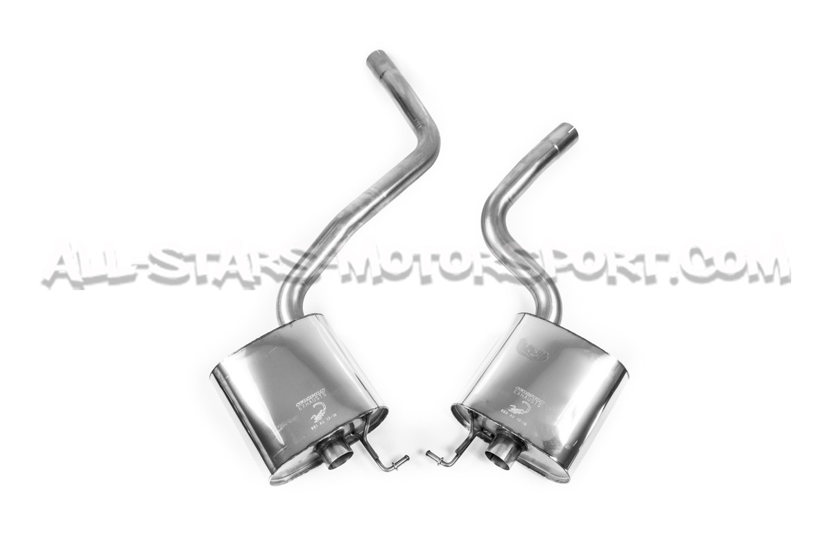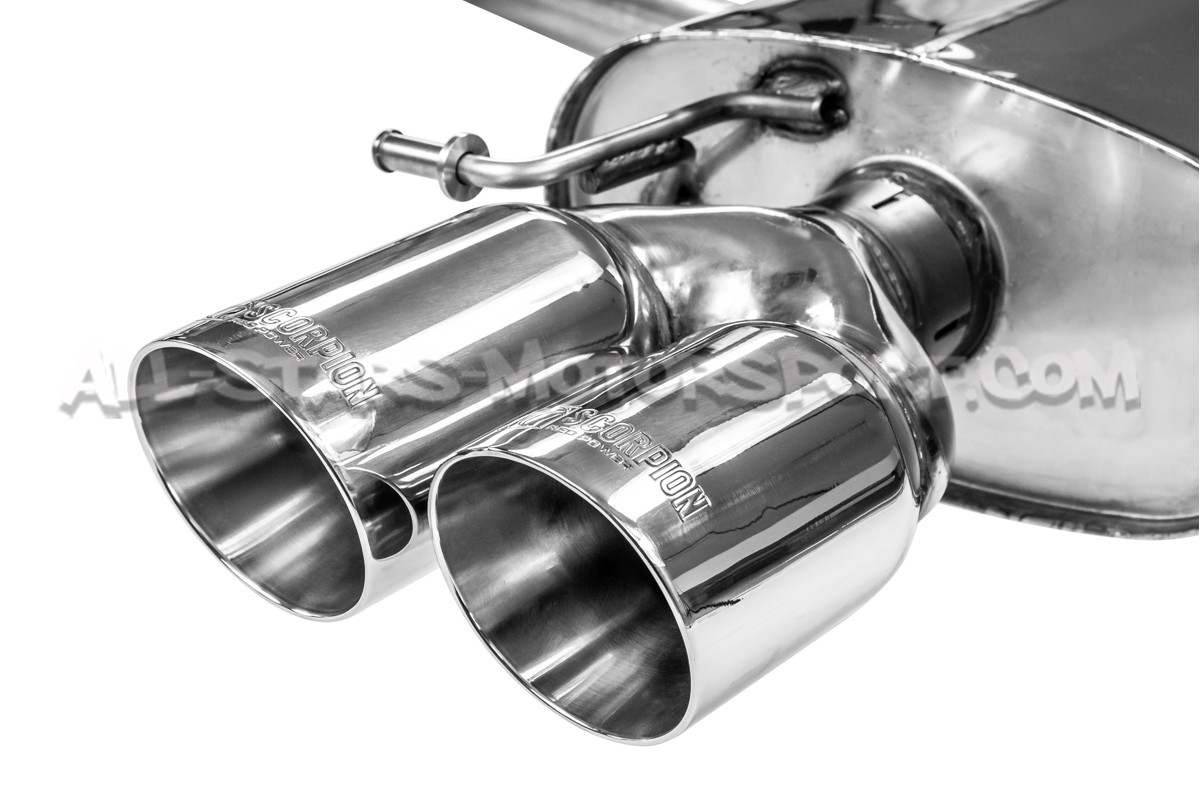 Escape Scorpion fabricado en acero inoxidable T304 con soldaduras TIG y tuberias de de 2.5" / 63mm desde el tubo delantero original o deportivo con salidas pulidas Daytona de 90mm