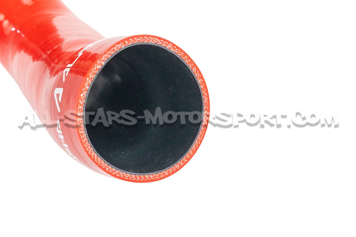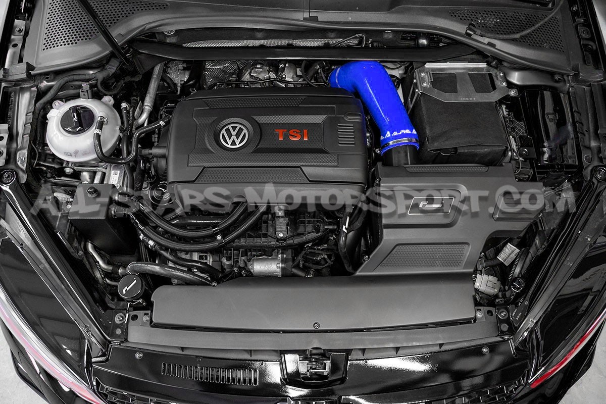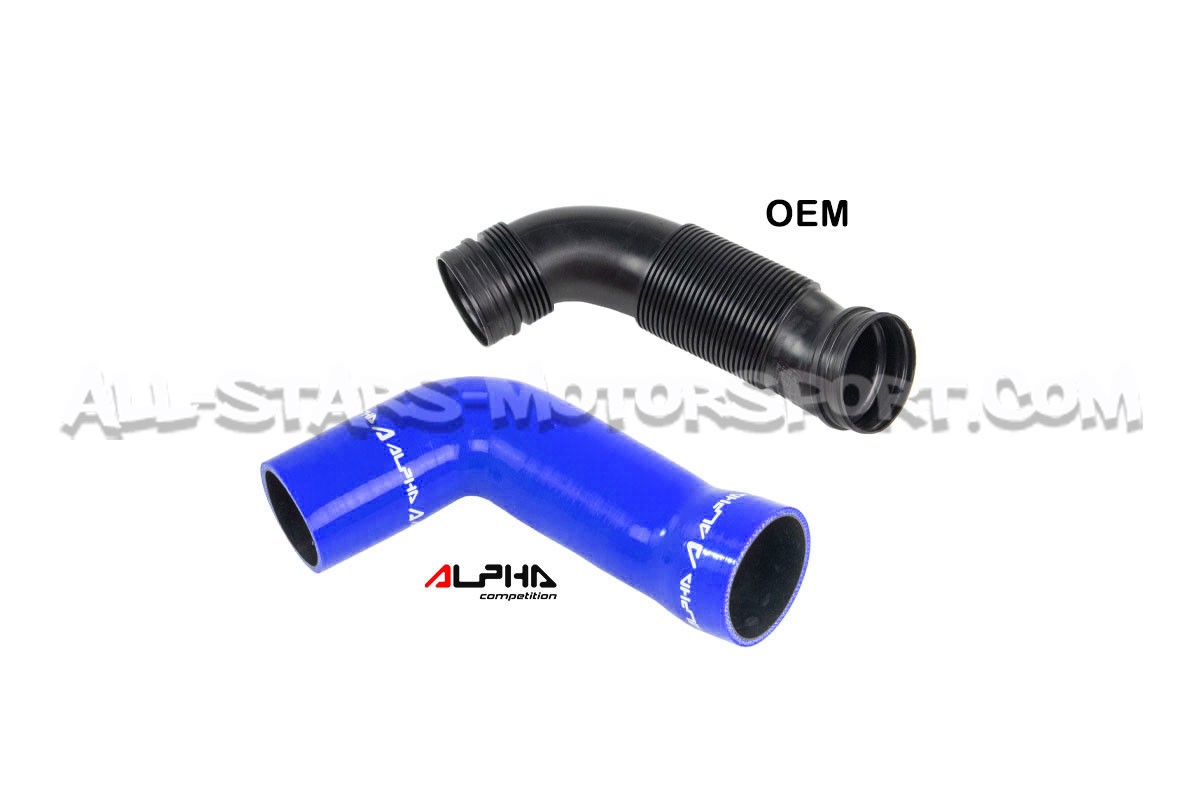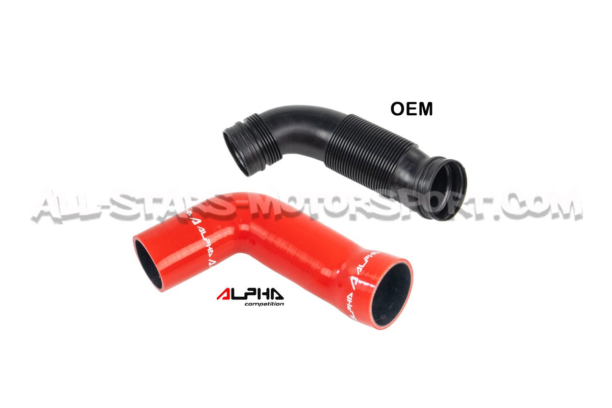 El tubo de admisión de silicona de gran volumen Alpha Competition se instala, sin modificaciones, para reemplazar el tubo de plástico de serie de los motores 1.8 / 2.0 TFSI EA888.3 que equipan los Golf 7 R / Golf 7 GTI / León 3 Cupra r S3 8V. Con un volumen interno mayor que el de serie y una estructura reforzada, esta manguera disponible en negro, rojo o azul permite aumentar los flujos de aire y soportar altas presiones y temperaturas.