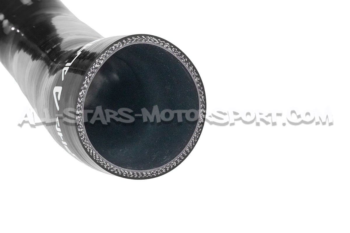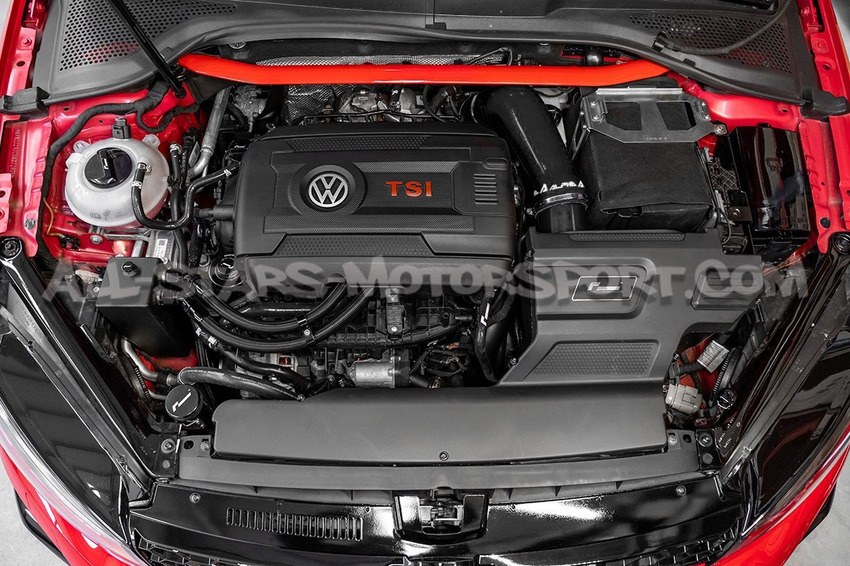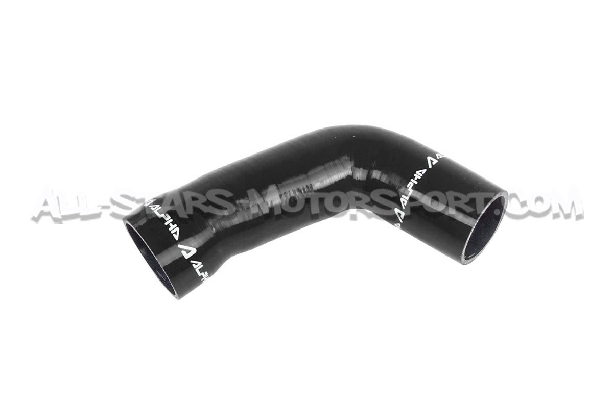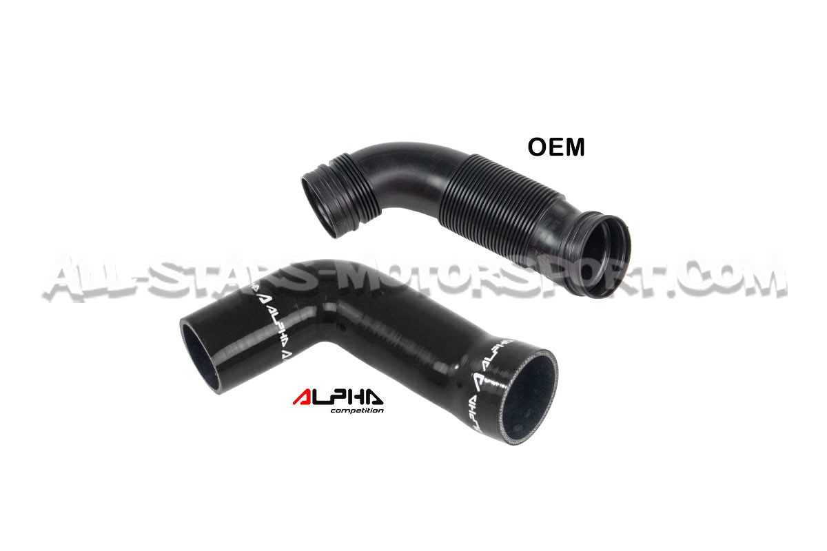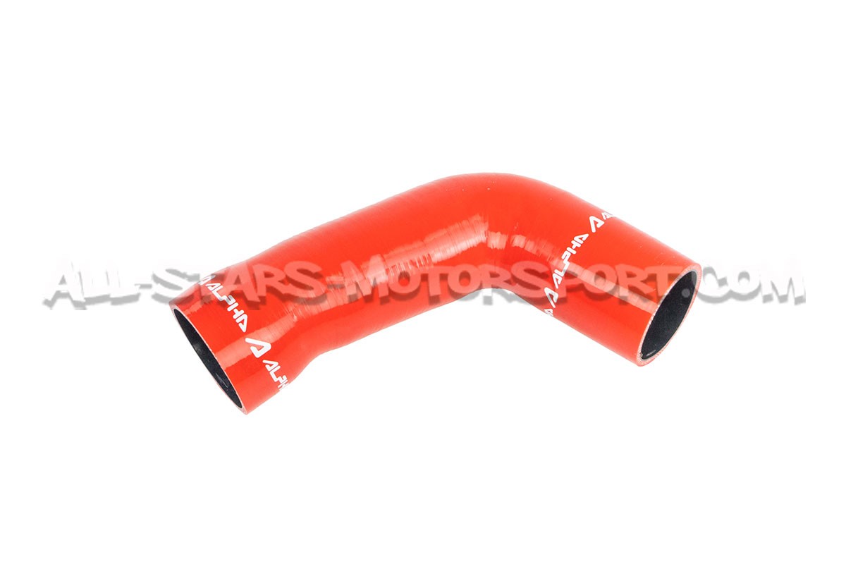 El tubo de admisión de silicona de gran volumen Alpha Competition se instala, sin modificaciones, para reemplazar el tubo de plástico de serie de los motores 1.8 / 2.0 TFSI EA888.3 que equipan los Golf 7 R / Golf 7 GTI / León 3 Cupra r S3 8V. Con un volumen interno mayor que el de serie y una estructura reforzada, esta manguera disponible en negro, rojo o azul permite aumentar los flujos de aire y soportar altas presiones y temperaturas.