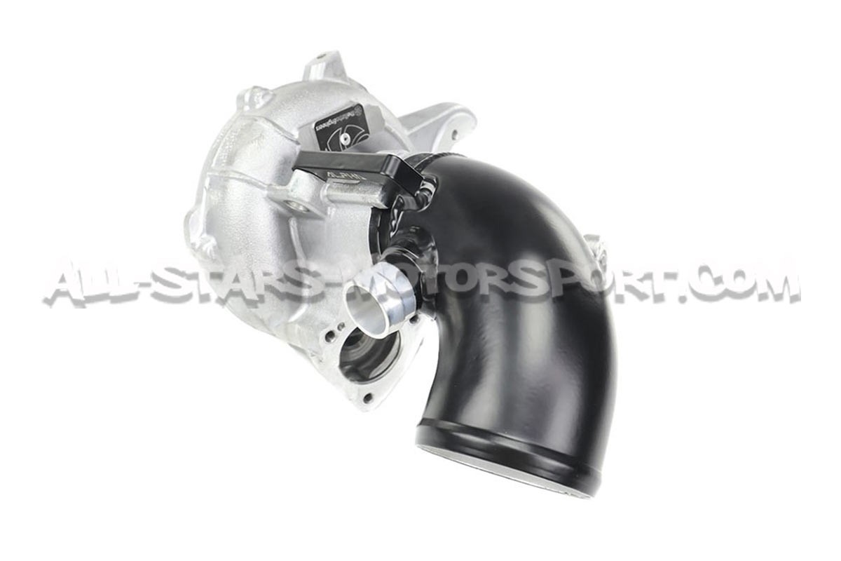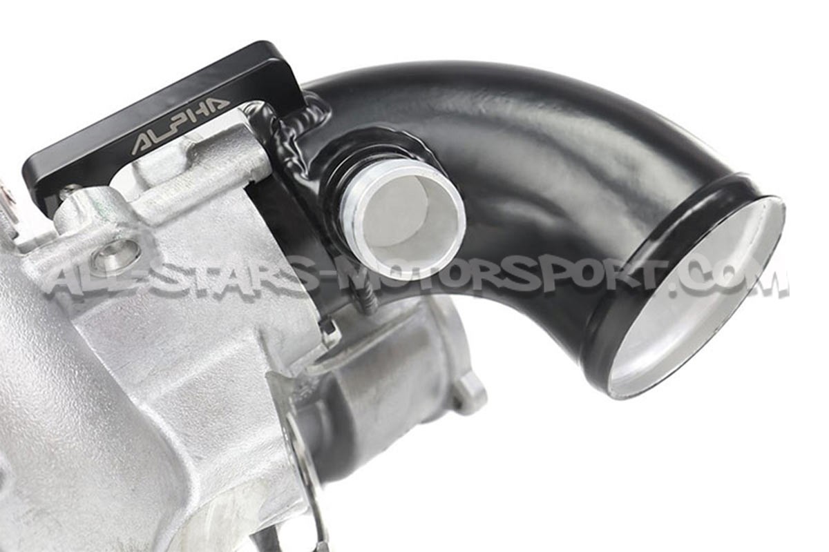 Este tubo inlet o entrada de turbo de Alpha Competition se instala, sin ninguna modificación, para asegurar la unión entre el turbo y el tubo de admisión en los motores 1.8T / 2.0T Ea888.3 del grupo VAG. La pieza de serie de plástico, diseñada como muy restrictiva, se reemplazará ventajosamente mejorando el volumen un 50% para aumentar los flujos de aire en coches modificados.