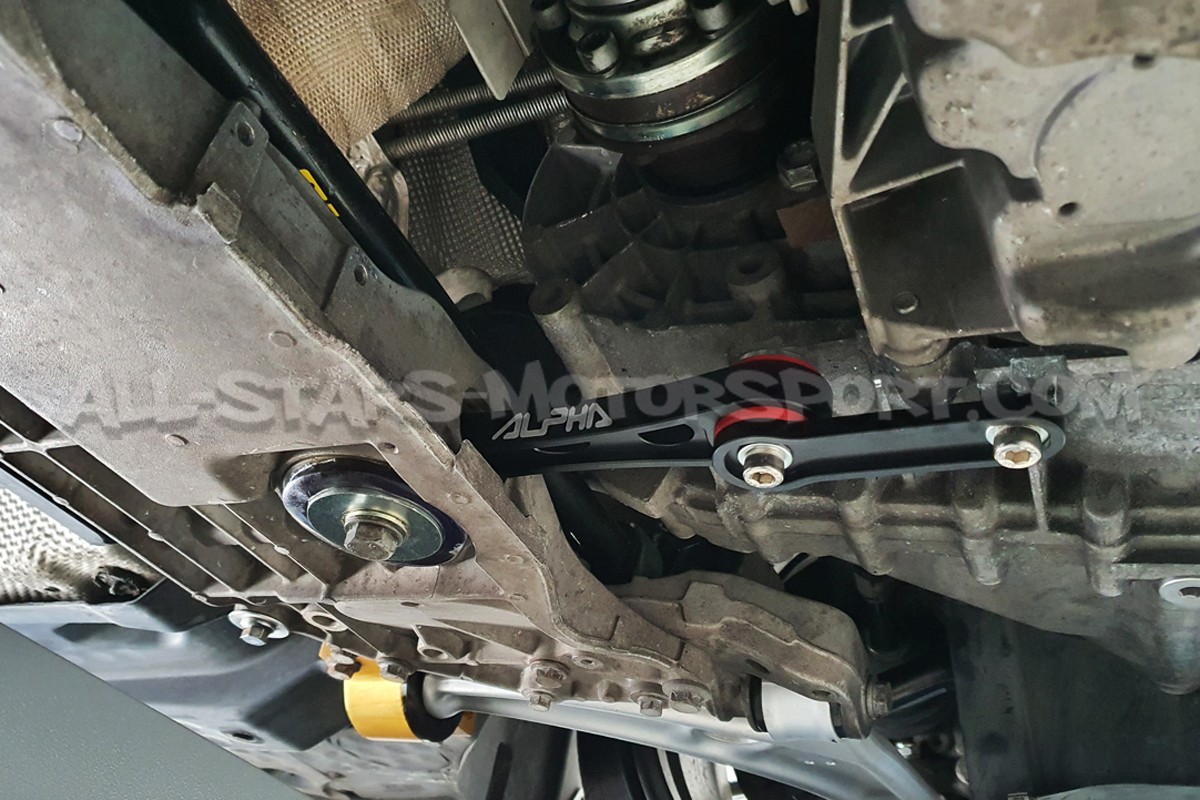 Este soporte inferior anti-par Alpha Competition, también conocido como Dog Bone o Pendulum, se instala sin ninguna modificación en los Golf 5 / Golf 6 / León 2 / A3 8P o TT Mk2. Fabricado en aluminio forjado 6061-T6 con silentblock reforzado de 80A, este soporte inferior limitará el movimiento del grupo motor / caja para brindar precisión y eficiencia en conducción deportiva.