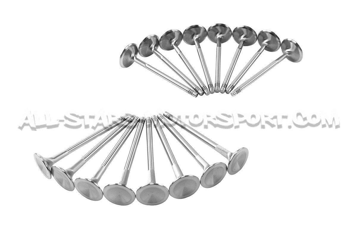 Este kit de 16 válvulas forjadas Ferrea Racing Super Alloy / Super Flo está disponible con dimensiones originales para instalación en culata de serie o con un diámetro 1mm mayor para instalación en culata modificada. Diseñadas para los motores 2.0 TFSI EA888.3 de los Golf 7 GTI / Golf 7R / Leon 3 Cupra o S3 8V, estas válvulas Competition Plus de 3 ranuras soportarán presiones, temperaturas, rotaciones y potencias extremas !
