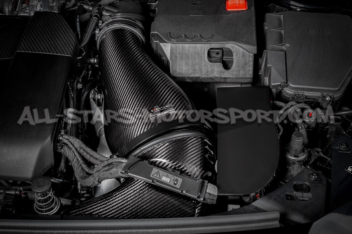 La admisión dinámica de fibra de carbono Eventuri para los motores M139 de los Mercedes Benz A45 AMG W177 y CLA 45 AMG C118 se compone de una caja de aire de gran volumen con filtro sintético lavable y reutilizable, de une difusor de aire de carbono y todo lo necesario para un montaje directo sin ninguna modificación. La eficiencia de este conjunto es tan alta como su acabado ya que, gracias a su diseño único, esta admisión Eventuri permite aumentar el flujo de aire entrante a la vez que mantiene una temperatura de admisión lo suficientemente baja como para permitir la ganancia de 16cvs en coche de serie