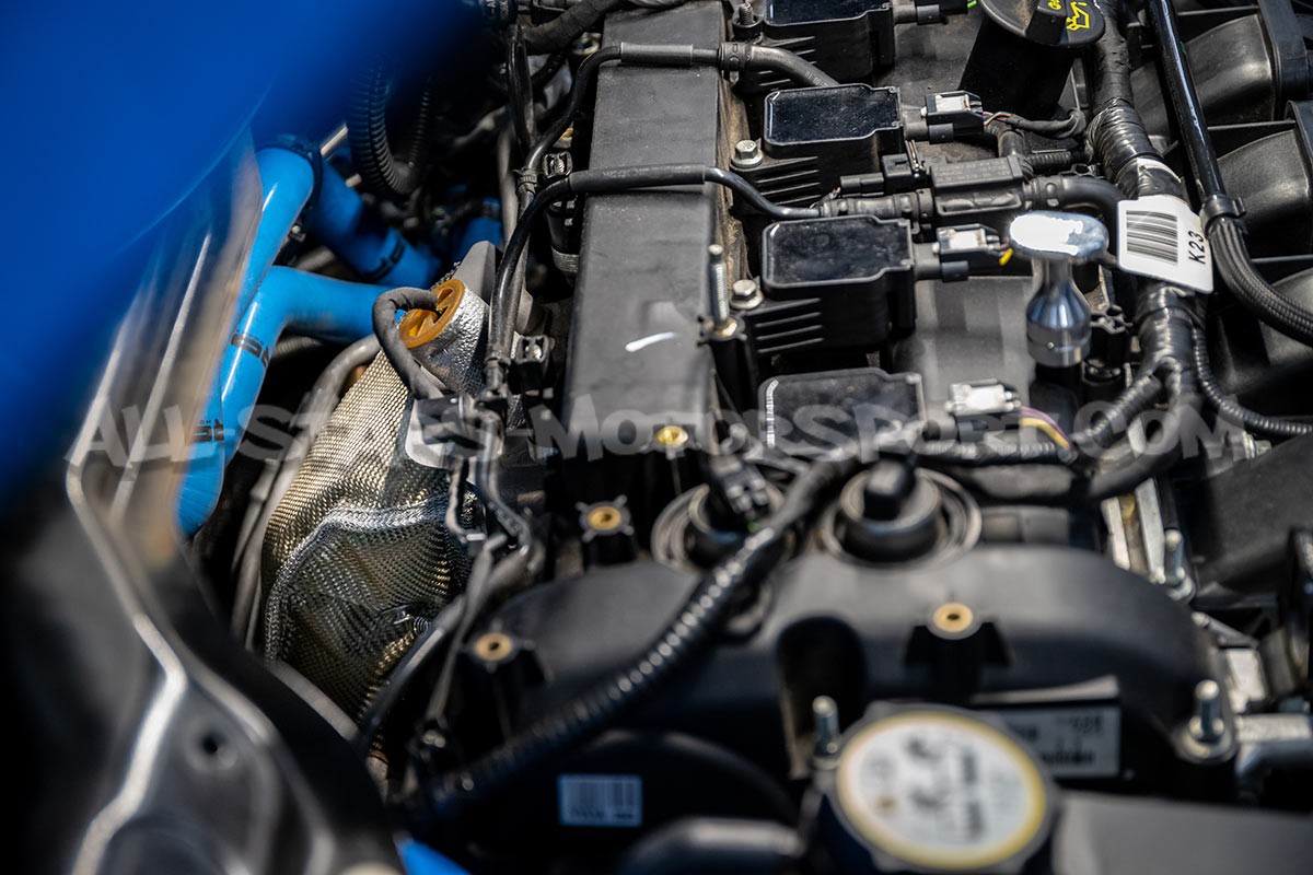 Limitando la propagación térmica causada por el aumento de temperatura del turbo y del colector de escape en el compartimento del motor de los Ford Mustang S550 Ecoboost y Focus 3 RS, esta manta térmica de turbo Mishimoto se instala, sin ninguna modificación, en los turbos de serie de los motores 2.3 Ecoboost. Ofreciendo una resistencia de hasta 1260 ° C, este escudo térmico hecho de sílice, acero inoxidable y titanio mantendrá, en favor del rendimiento y la fiabilidad, el sistema de admisión y enfriamiento alejado de las altas temperaturas del sistema de sobrealimentación.