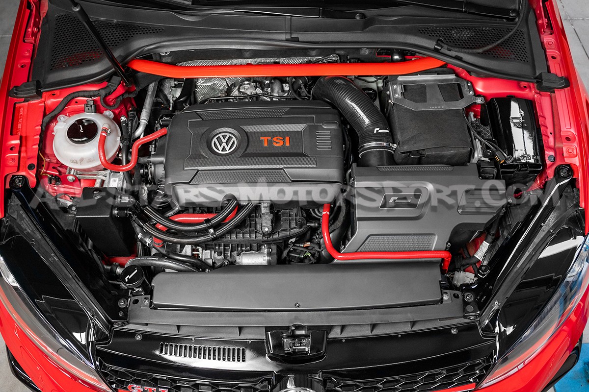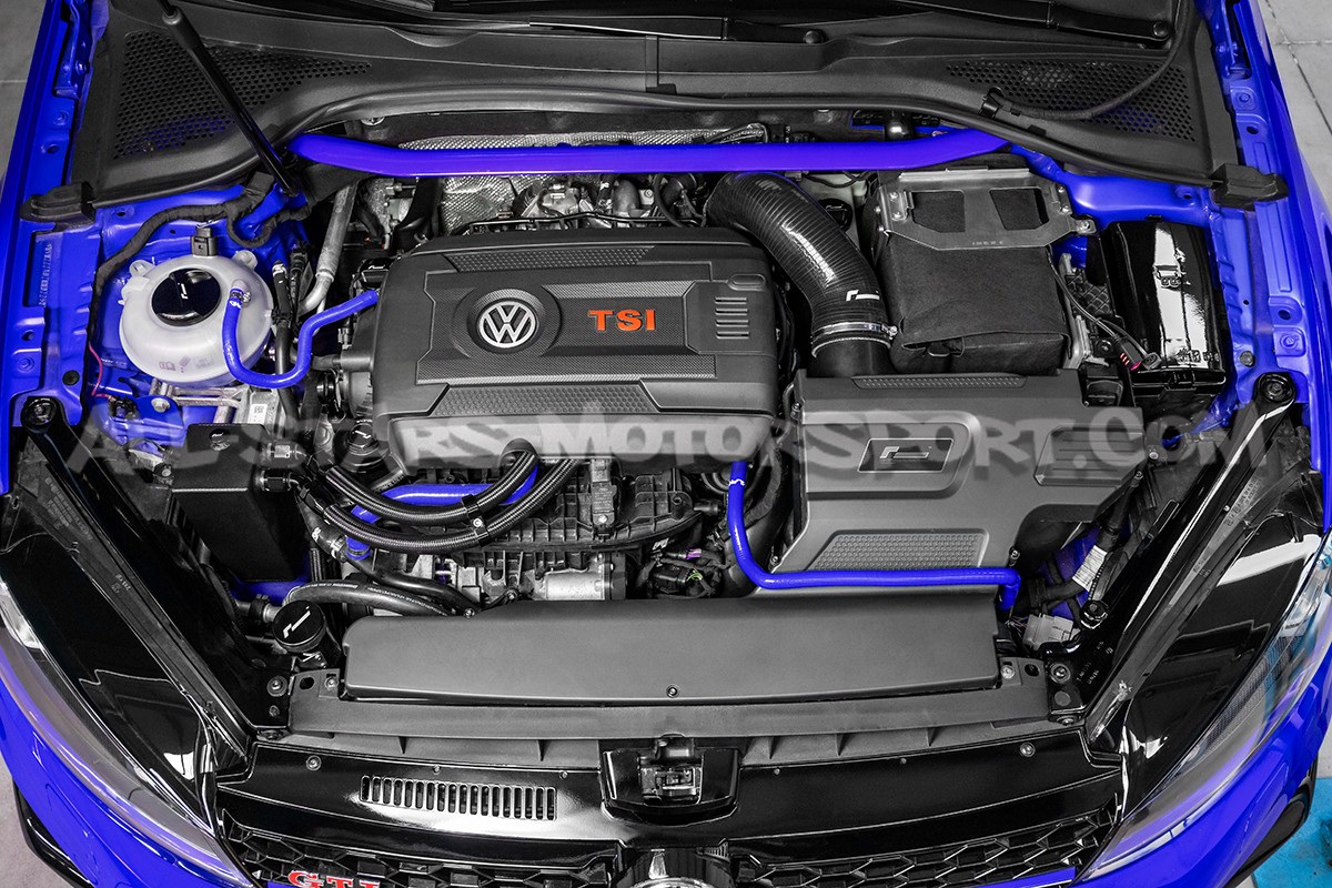 Disponible en rojo, negro o azul, este kit de mangueras superiores de enfriamiento en silicona se instala como reemplazo directo de los tubos de serie en los motores 2.0 TFSI EA888.3 de los Golf 7 R / S3 8V / Golf 7 GTI / TT 8S o Leon 3 Cupra. Con una alta resistancia al calor y a la presion, este kit de 4 tubos Alpha Competition traera confiabilidad al circuito de enfriamiento y estética al compartimiento del motor !