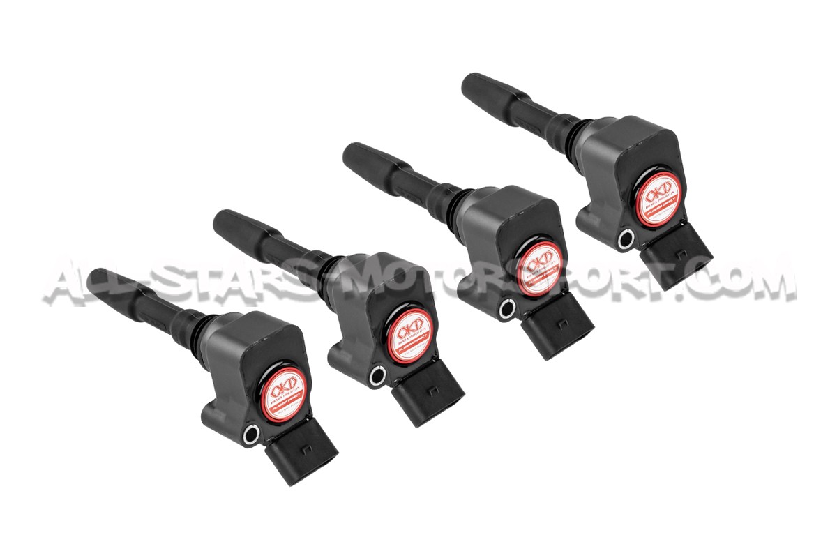 Fabricadas a mano en Japón, las bobinas de encendido de alto rendimiento de Okada Projects son, sin duda, las mejores bobinas de encendido para los motores 2.0 TFSI EA888.3 de los Golf 7 GTI , S3 8V , Golf 7 R , TT 8S , Leon 3 Cupra... preparados. Instaladas sin ninguna modificación como reemplazo directo de las originales, este pack de 4 bobinas de encendido con tecnología Plasma Direct aportará ganancia en potencia y par a la vez que un mejor tiempo de respuesta, un ralentí más estable y menos emisiones.