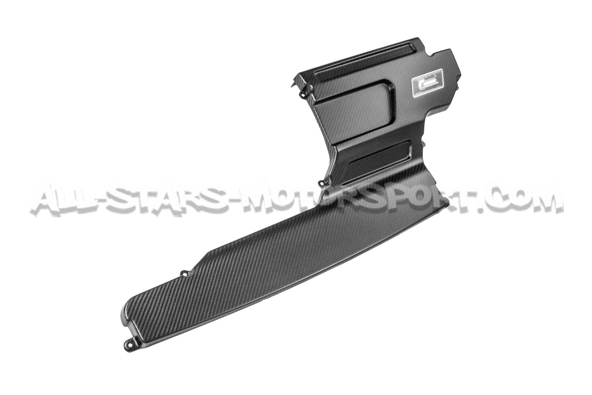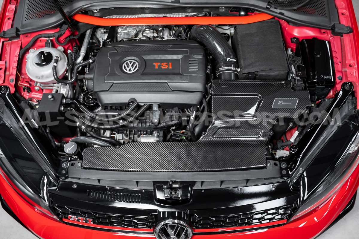 Evolución estética ultima, esta tapa de fibra de carbono disponible en acabado mate o brillante, se instala sin ninguna modificación como reemplazo directo de la tapa de plástico de las admisiones Racingline R600 destinadas a los motores 1.8 / 2.0 TFSI EA888.3 que equipan las plataformas MQB como los Audi S3 8V / León 3 Cupra, TT 8S o Golf 7 R.