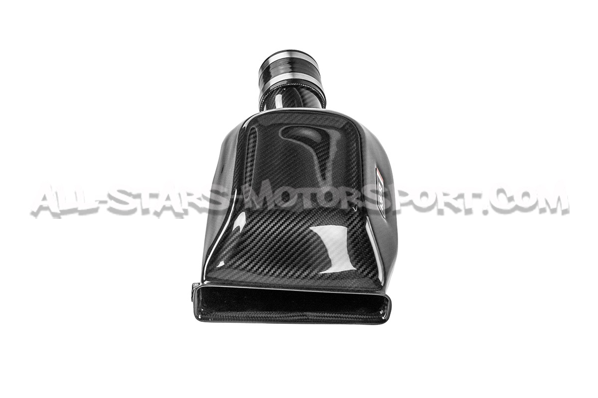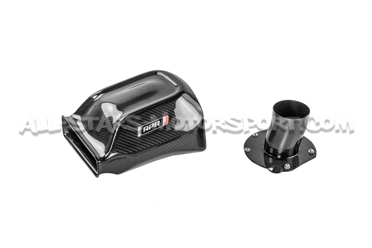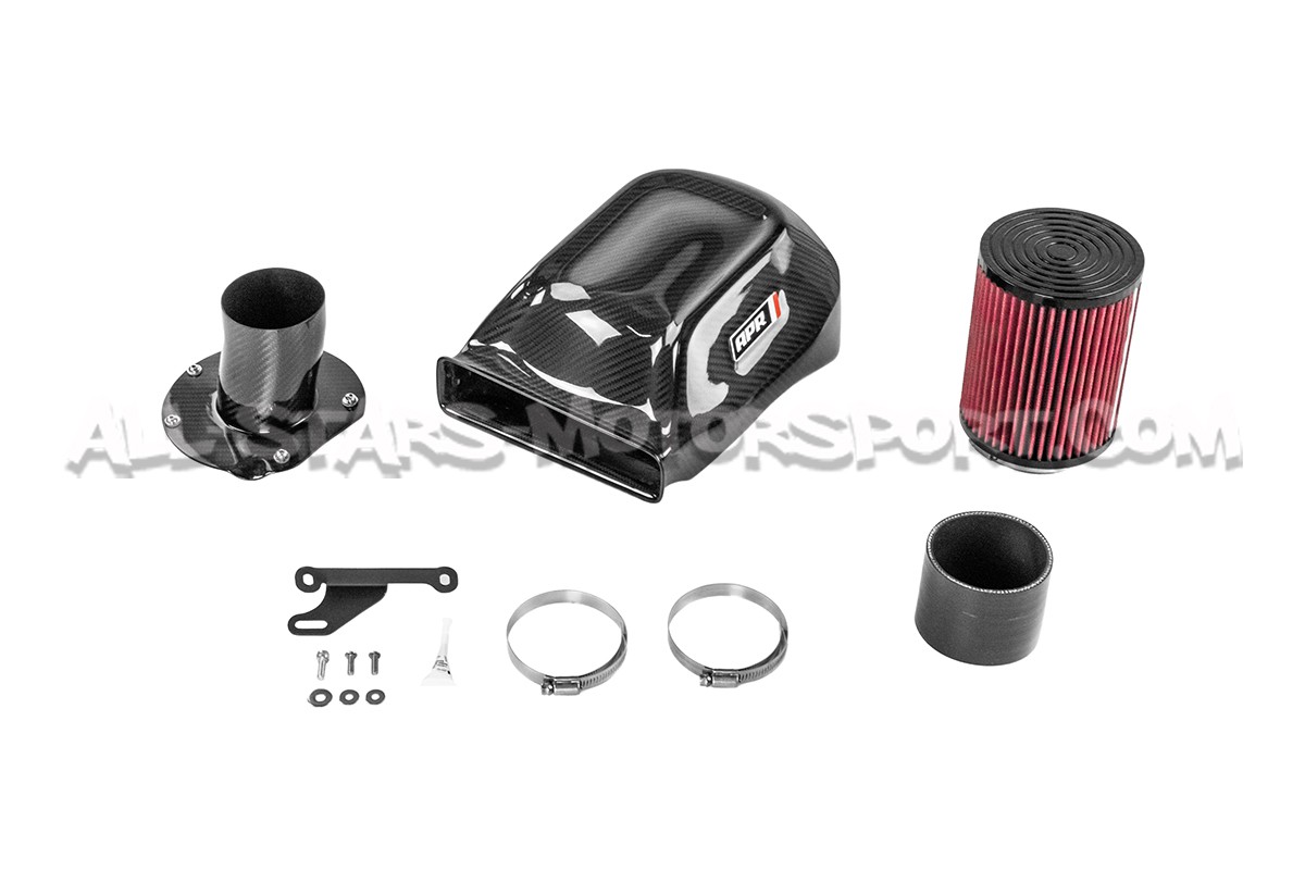 Esta admisión APR, fabricada en fibra de carbono, se instala desde el soporte del caudalímetro en los motores 2.0 TSI EA888 que equipan, entre otros, los Golf 6 GTI / León 2 FR / TT 8J o Scirocco. Con un 31% más de flujo de aire que el elemento estándar, esta caja de aire, equipada con un filtro de algodón lavable y reutilizable, se entrega con el manguito de silicona reforzada y el kit de montaje necesario para la instalacion.