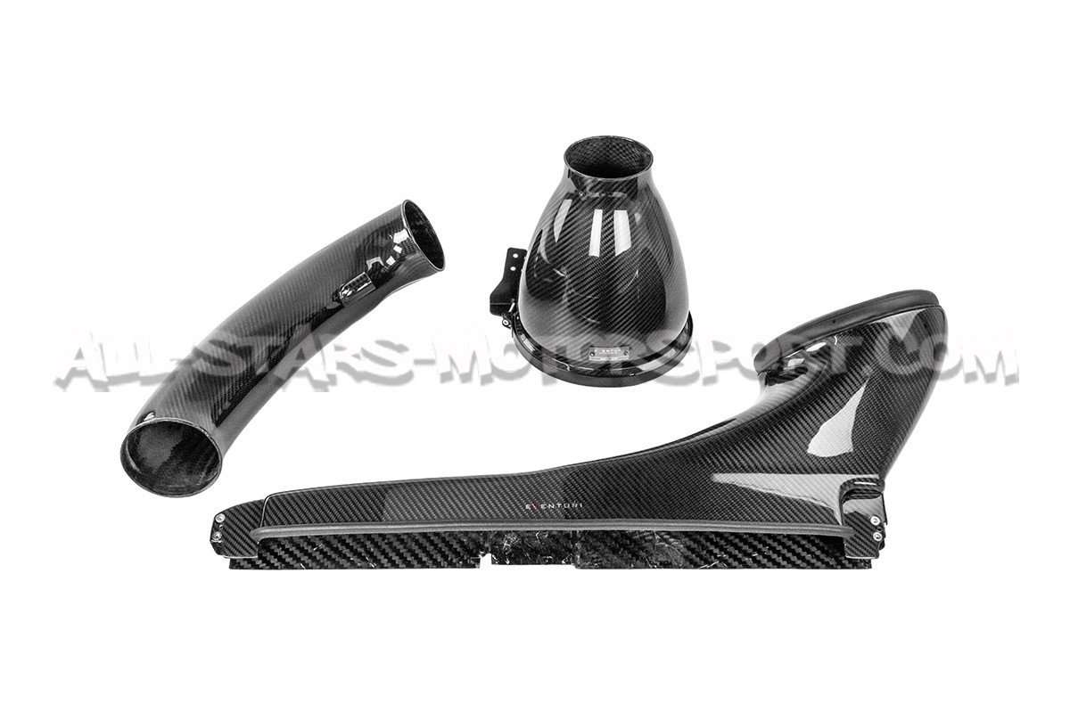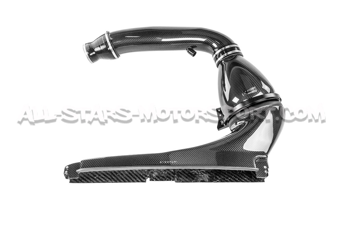 La admisión dinámica Eventuri, hecha de fibra de carbono para los Audi RS3 8Y / Cupra Formentor VZ5, lleva una caja de aire de gran volumen con un filtro sintético lavable y reutilizable, un tubo de admisión de carbono de 103mm de diámetro, un difusor de carbono, un escudo térmico específico y todo lo necesario para un montaje directo sin modificacion. La eficiencia de este conjunto está a la altura de su acabado, permitiendo aumentar el flujo de aire como igualmente mantener una temperatura suficientemente baja para lograr una ganancia de 14cvs en un motor de serie !