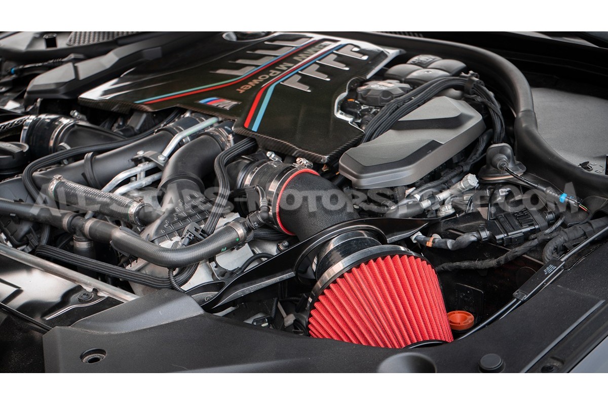 La admision CTS Turbo para los BMW M5 F90 / M8 F9x consta con tubos de admision de aluminio de gran diametro, filtros de aire multicapa lavables, manguitos de silicona de alta calidad y el kit de montaje completo para una instalacion tan sencilla como eficaz. Con un sonido agresivo y una ganancia de potencia de 16cvs, este kit, como todos los productos de la marca, es una referencia en términos de admisión directa para los motores S63.