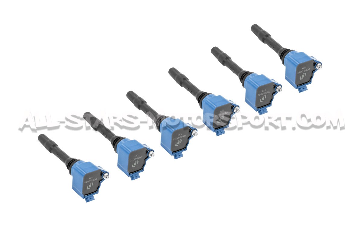 Las bobinas de encendido de alto rendimiento Dinan, son una de las evoluciónes mas sencillas de instalar en los motores BMW B58 /S58 que equipan, entre otros, los 140i / 240i / 340i / 440i, Toyota Supra Mk5 y los M3 G80 / M4 G8x / X3M. Este pack de 6 bobinas se instala como reemplazo directo de las bobinas de serie para proporcionar una chispa mas estable y potente pero tambien un aspecto mas agresivo con su acabado azul !